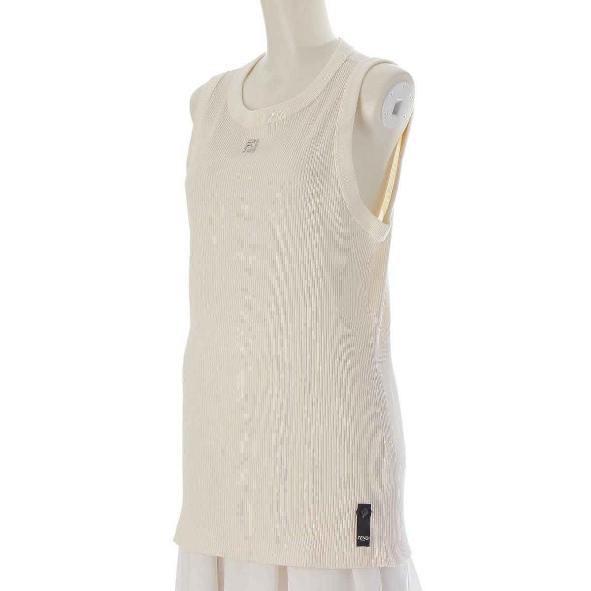 フェンディ 24SS FFロゴ リブ タンクトップ トップス カットソー FY1297 ホワイト シルバー XL