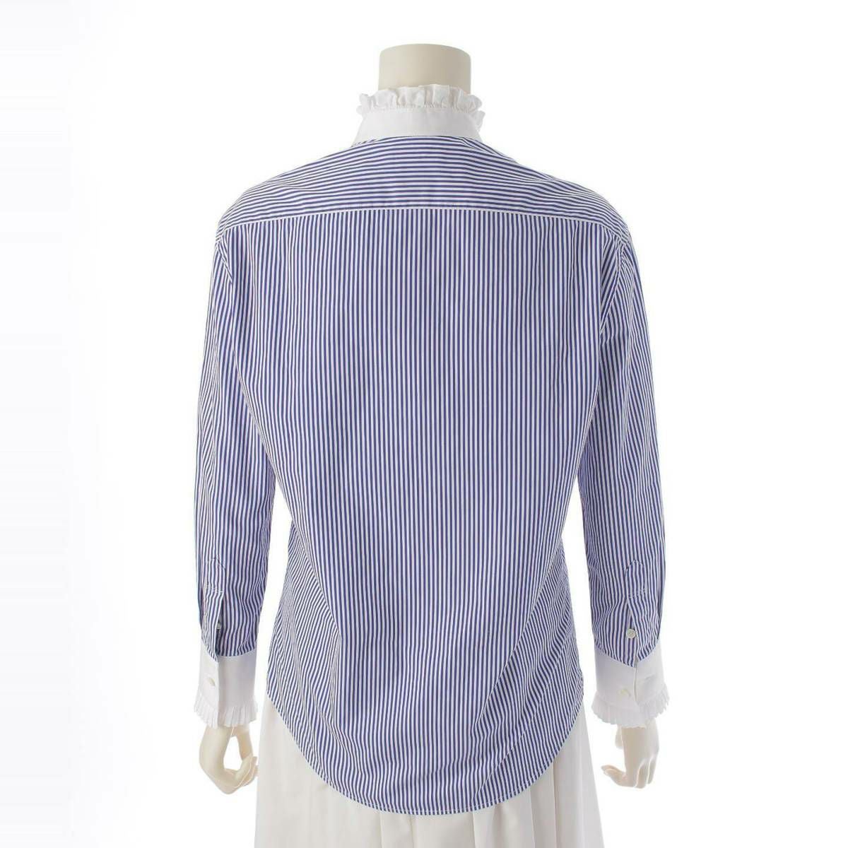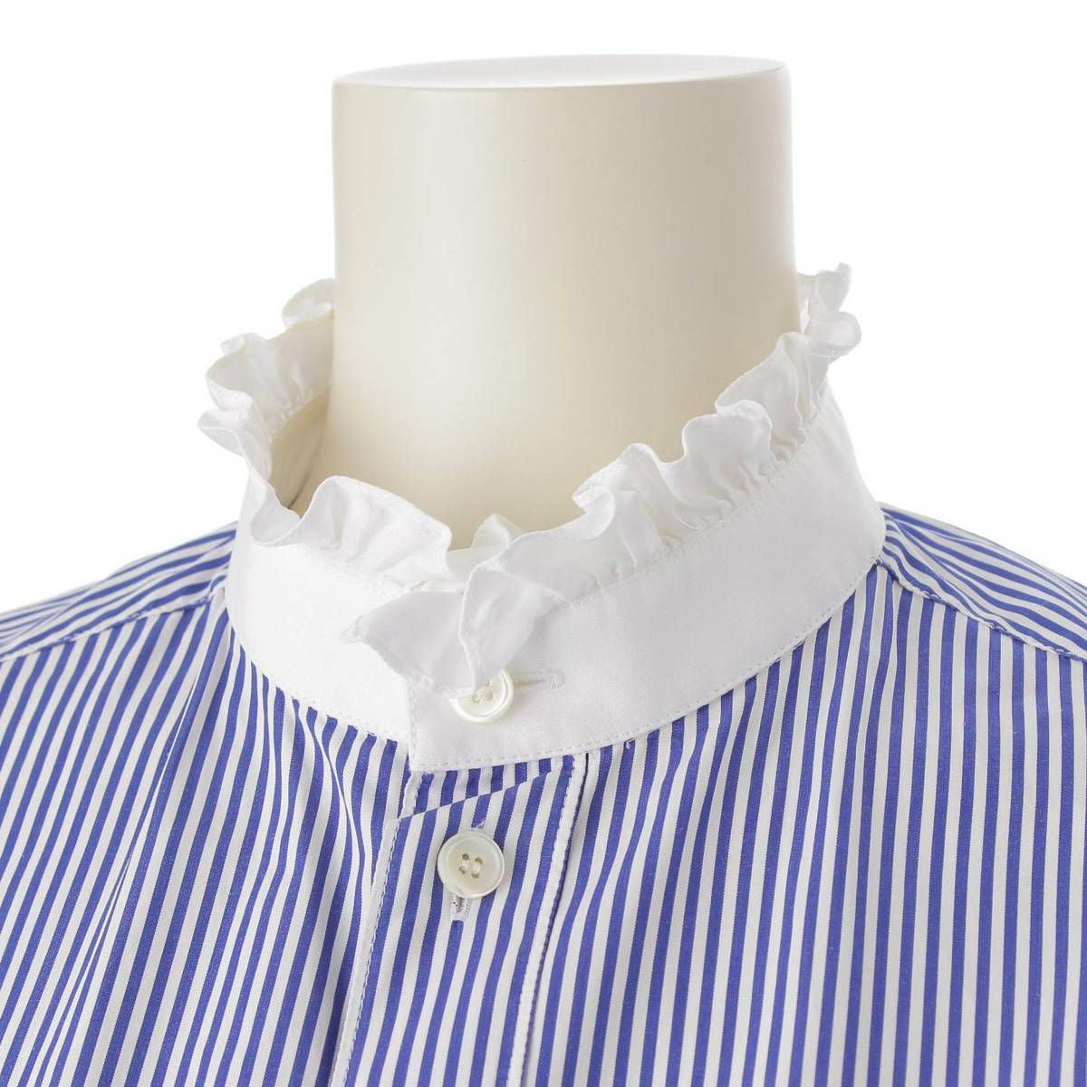 セリーヌ 21年 エディ期 ストライプ フリル クレリック ブラウス シャツ 20213899C ホワイト ブルー 36