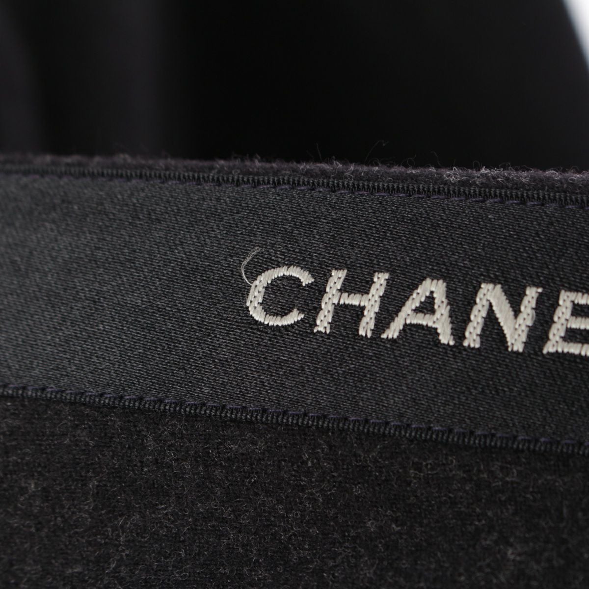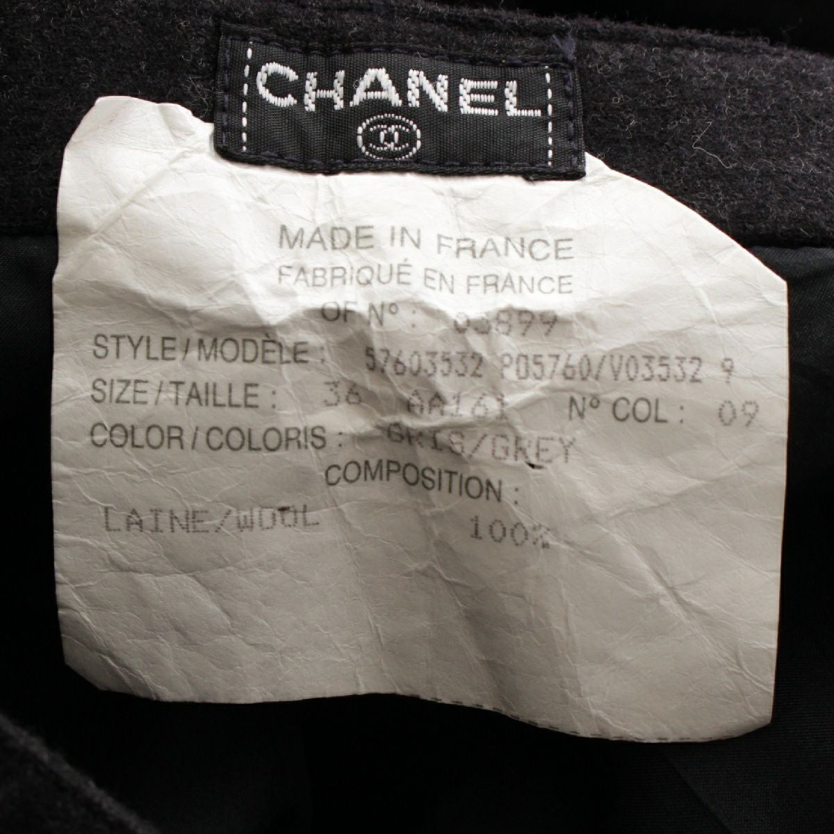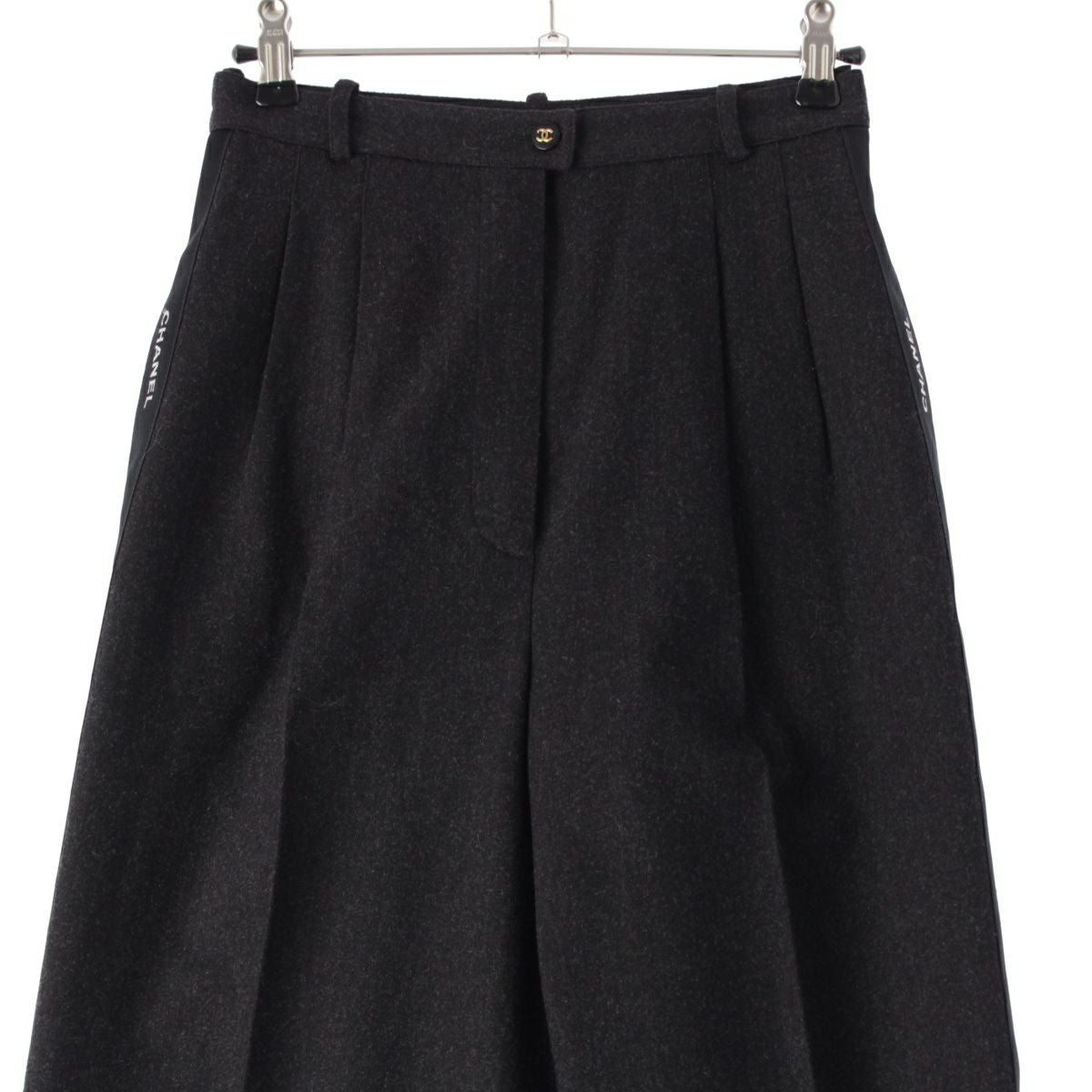 シャネル ウール サイド ライン ロゴ ココマークボタン 紙タグ パンツ スラックス トラウザーズ P05760 グレー 36