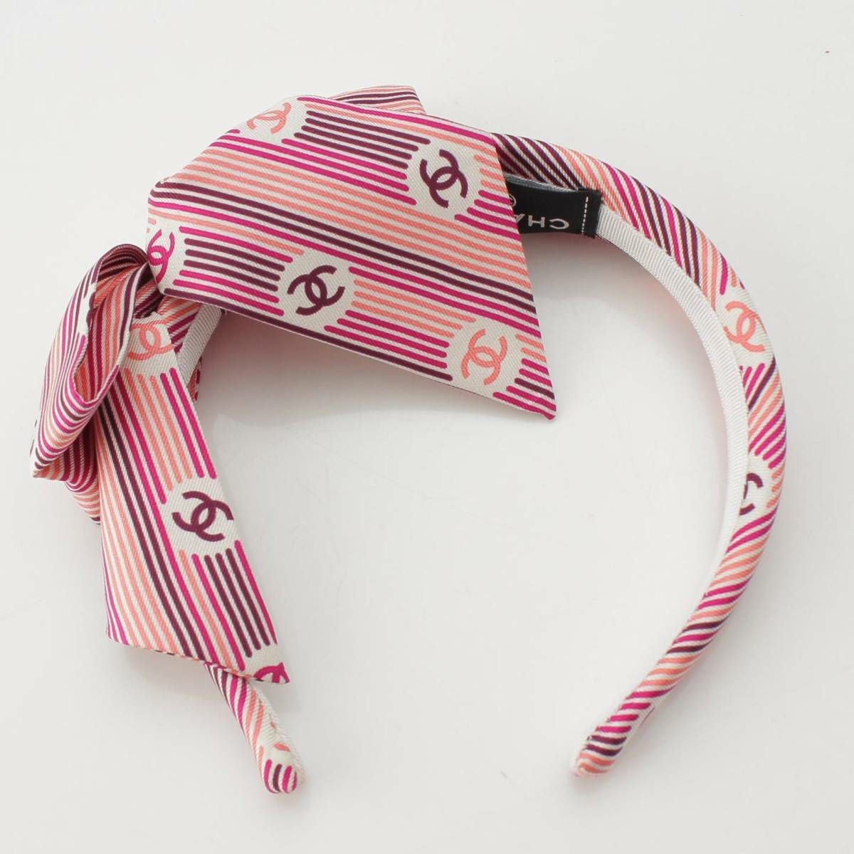 シャネル ココマーク ストライプ リボン カチューシャ ヘアアクセサリー ピンク
