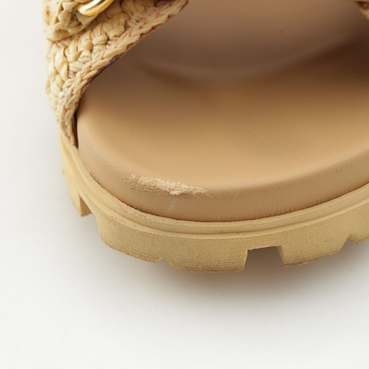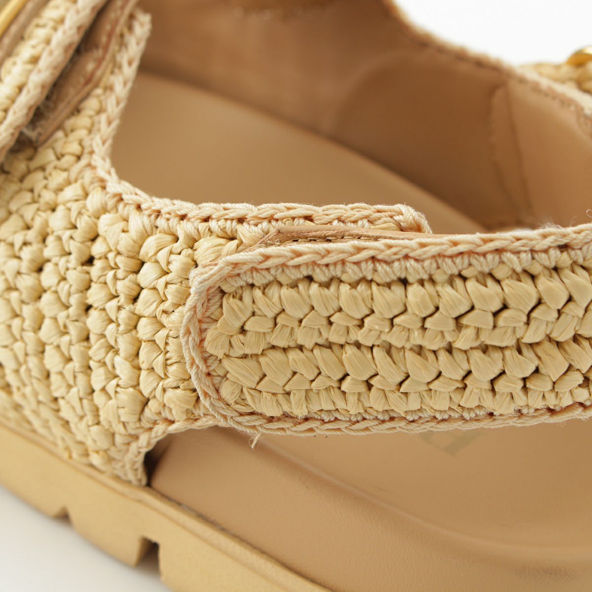 プラダ ラフィア クロシェ トライアングルロゴ 三角プレート ストラップ フラット サンダル 1X440N ナチュラル 39