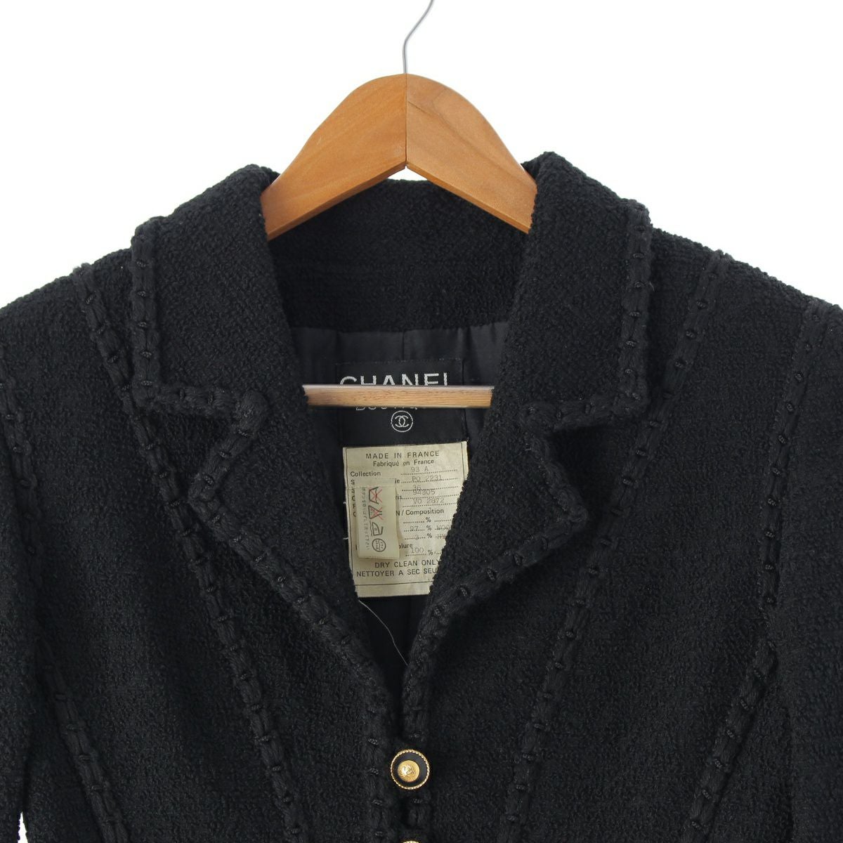 シャネル 93A シルク ヴィンテージ ココボタン ショート丈 シングル テーラードジャケット トップス PO2231 ブラック 36