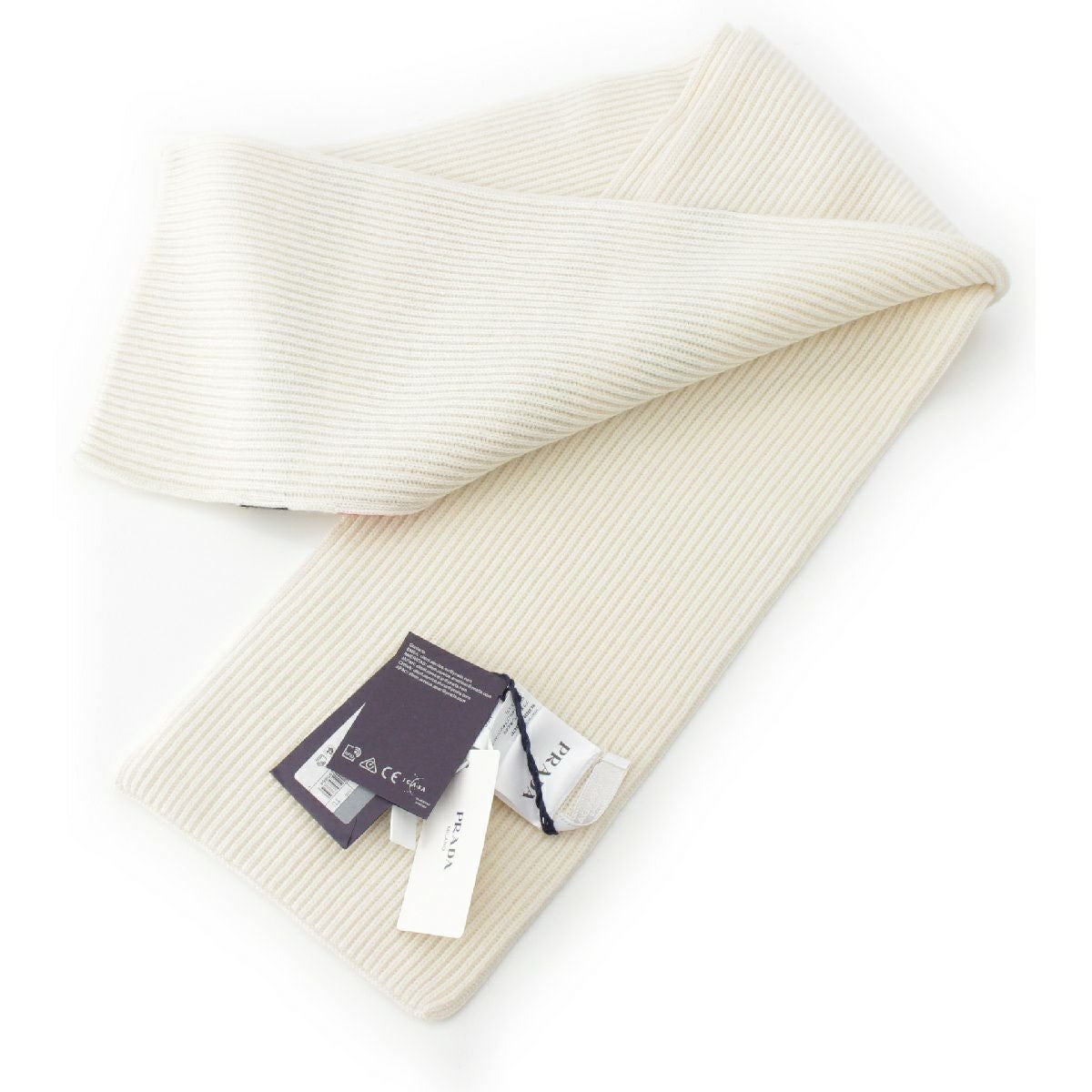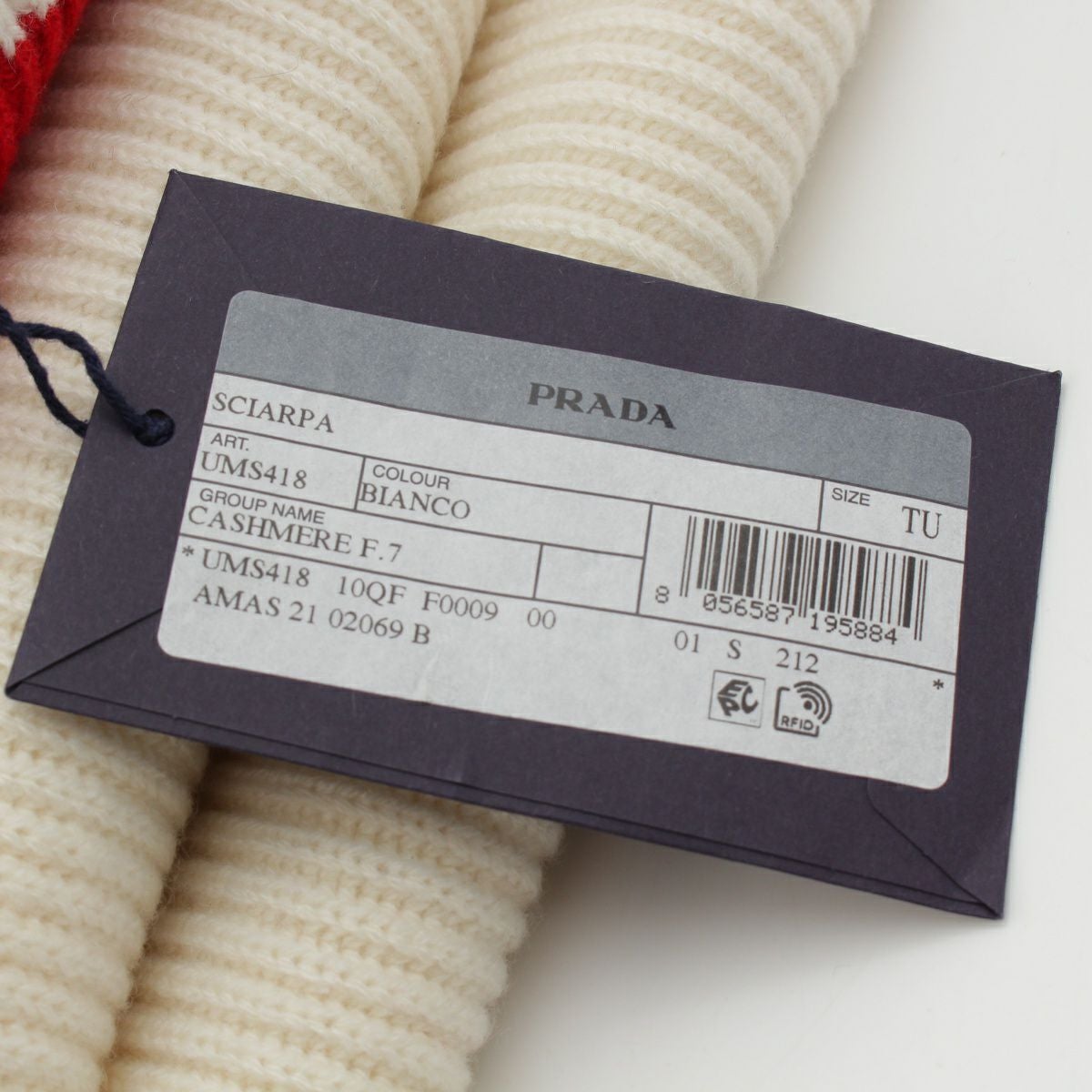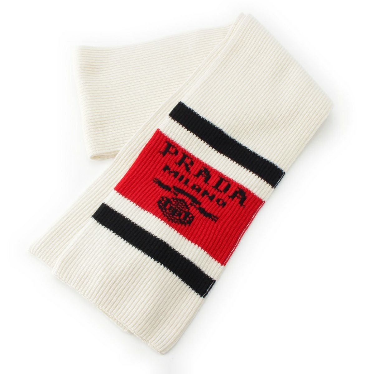 プラダ カシミヤ ロゴ ライン マフラー ストール UMS418 ビアンコ ホワイト レッド ブラック