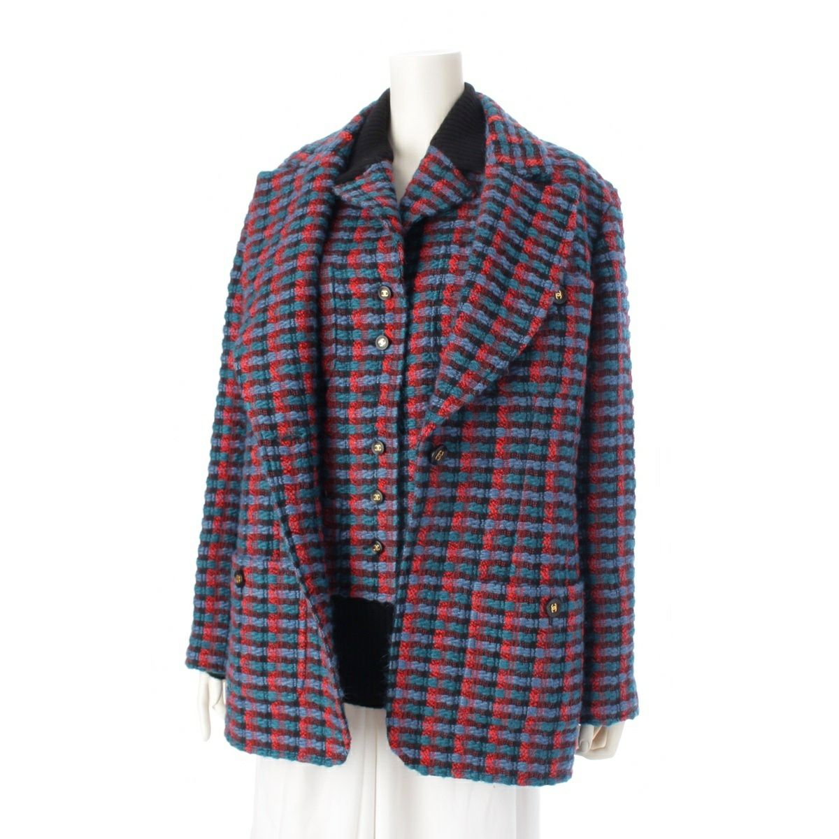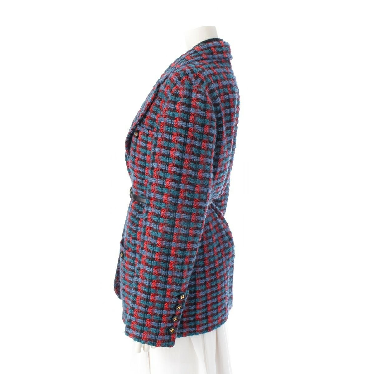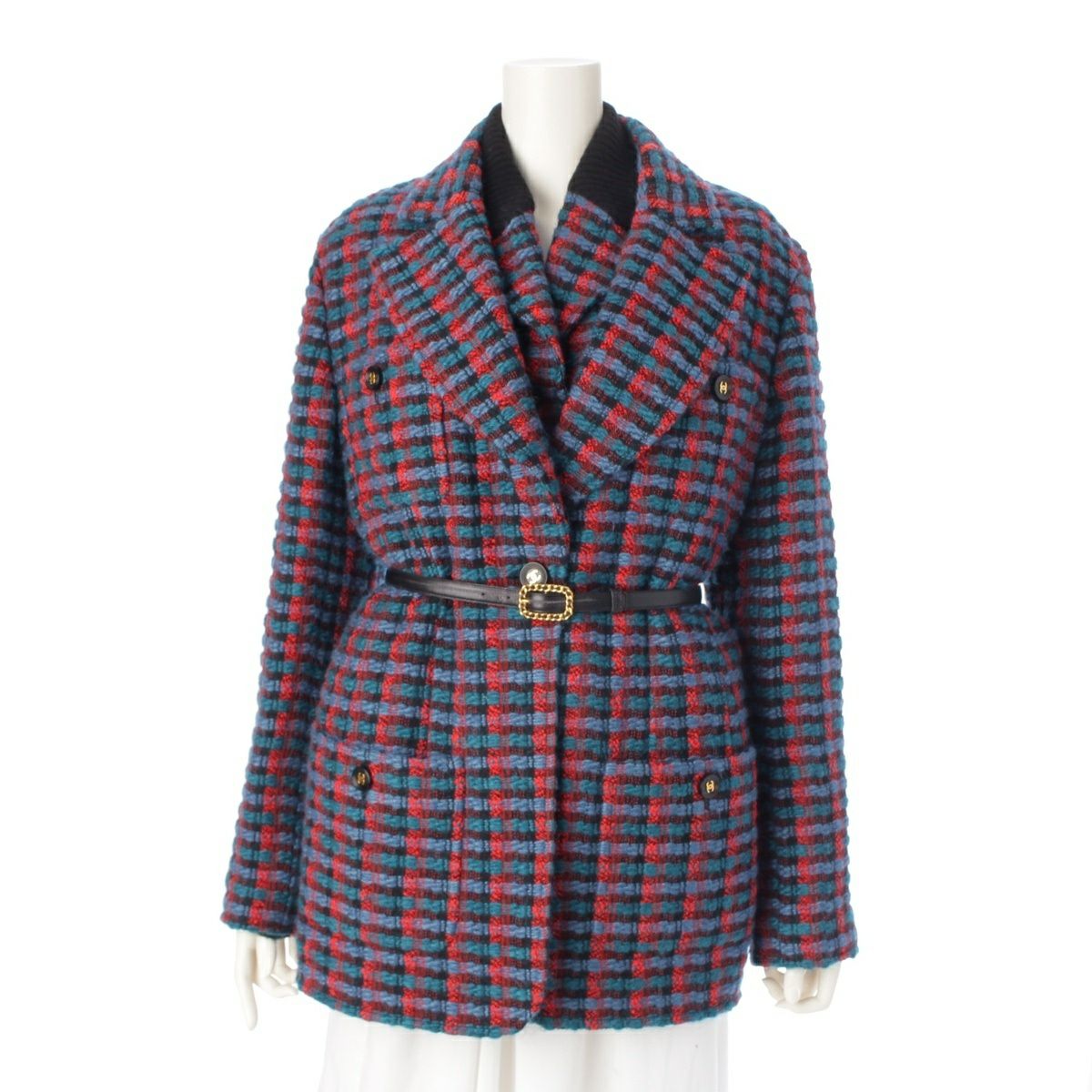 シャネル 95A ツイード ココマーク ベルト付き アンサンブル ニット ジャケット PO5880 ブルー 40