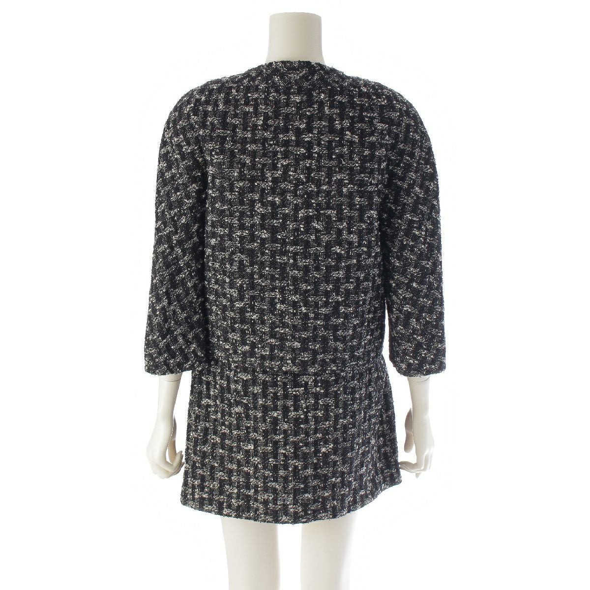 シャネル ウール ツイード ジップアップ ジャケット プリーツ スカートセットアップ ノーカラー 7分袖 ミニ丈 P46659/P46707 ブラック 34
