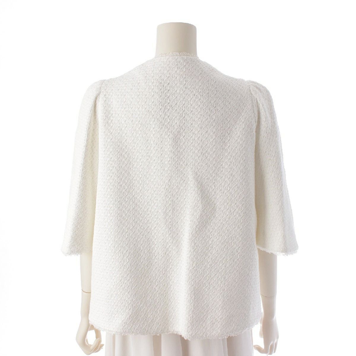 ドゥロワー コットン シルク フリンジニット ノーカラージャケット 6522-299-0972 ホワイト 36