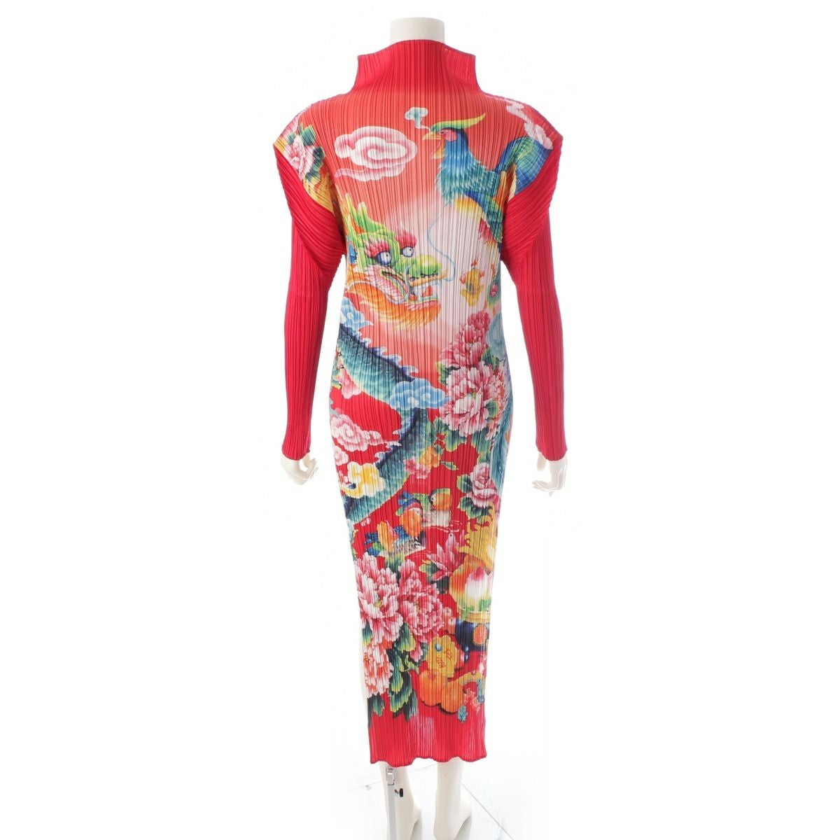 プリーツプリーズ イッセイミヤケ 1998 ドラゴン 龍 鳳凰 柄 ボトルネック ワンピース PP81-JH788 レッド マルチカラー 3