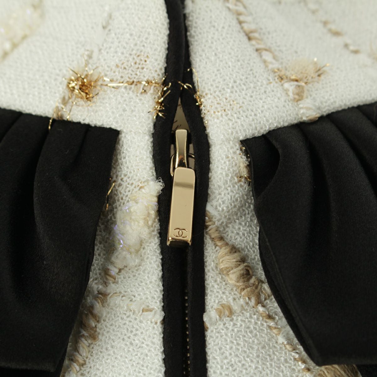 シャネル 19S ツイード ココマーク ボウタイ ジップアップ ジャケット スカートセットアップ パイピング ボトルネック P61190 ベージュ ゴールド 36