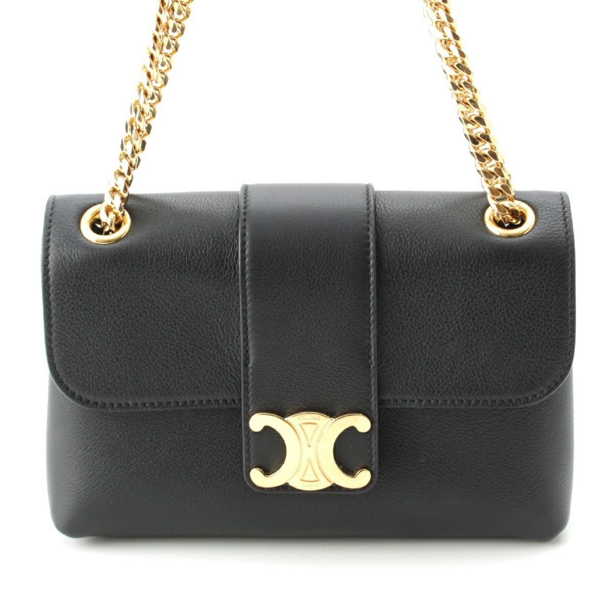 セリーヌ ヴィクトワール レザー トリオンフ チェーン ショルダーバッグ 115853FDU ブラック