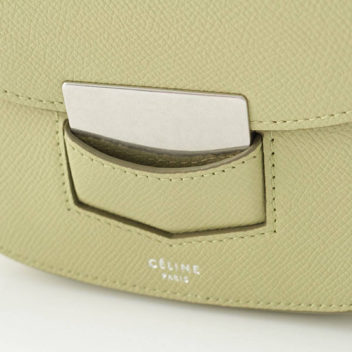 セリーヌ トロッター スモール レザー ショルダーバッグ クロスボディ 176643 ライトグリーン シルバー金具