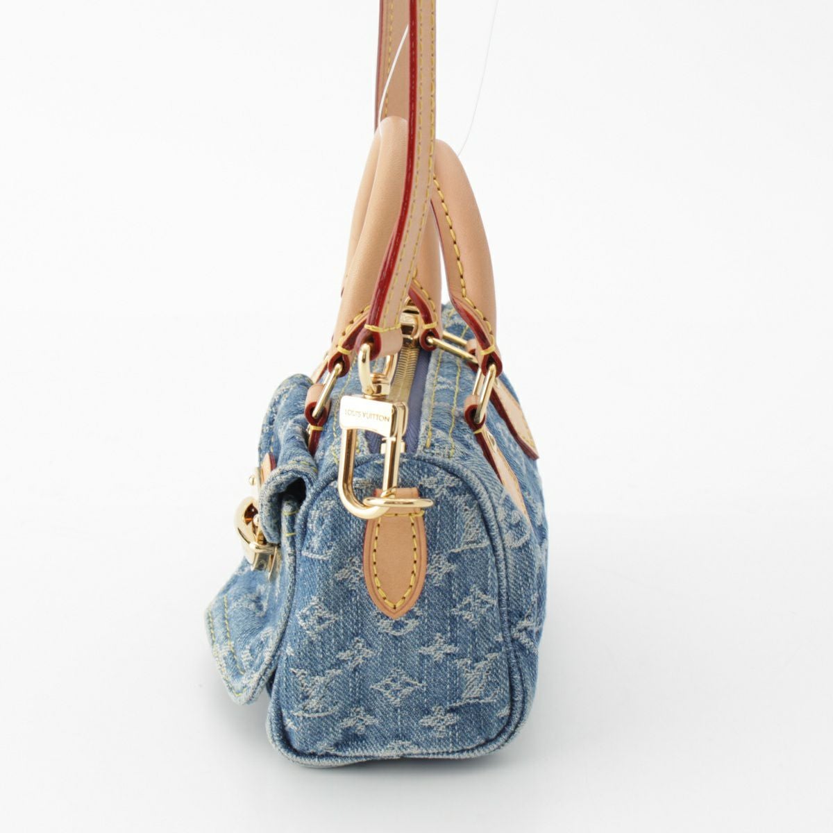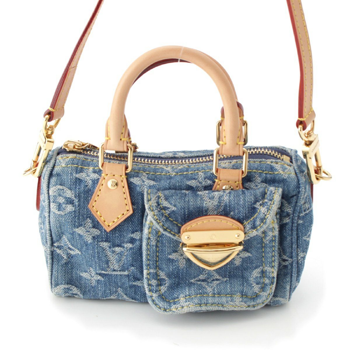 ルイヴィトン モノグラムデニム ナノスピーディ 2way ショルダー ハンドバッグ ミニボストン ポシェット M82950 ブルー