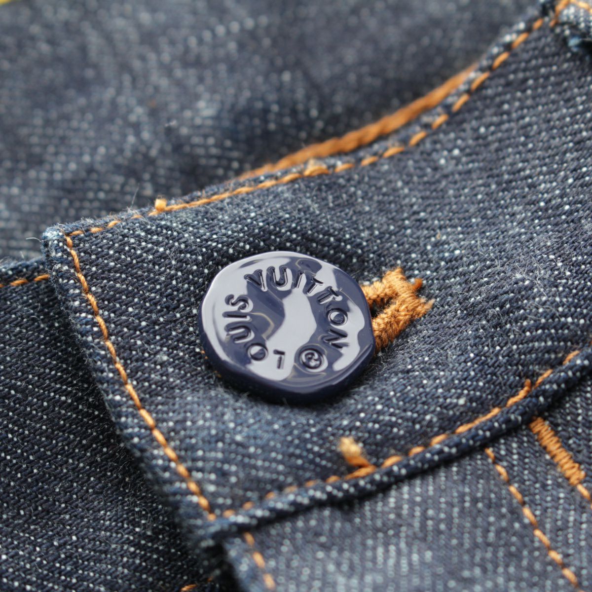 ルイヴィトン コットン デニム 牛革タグ イエローステッチ パンツ レギュラーパンツ ボトムス HID80WDK0 1A5VTF ブルー 34