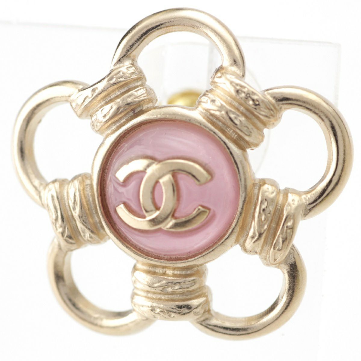 シャネル P24B ココマーク フラワー ピアス アクセサリー ABE286 ゴールド×ピンク