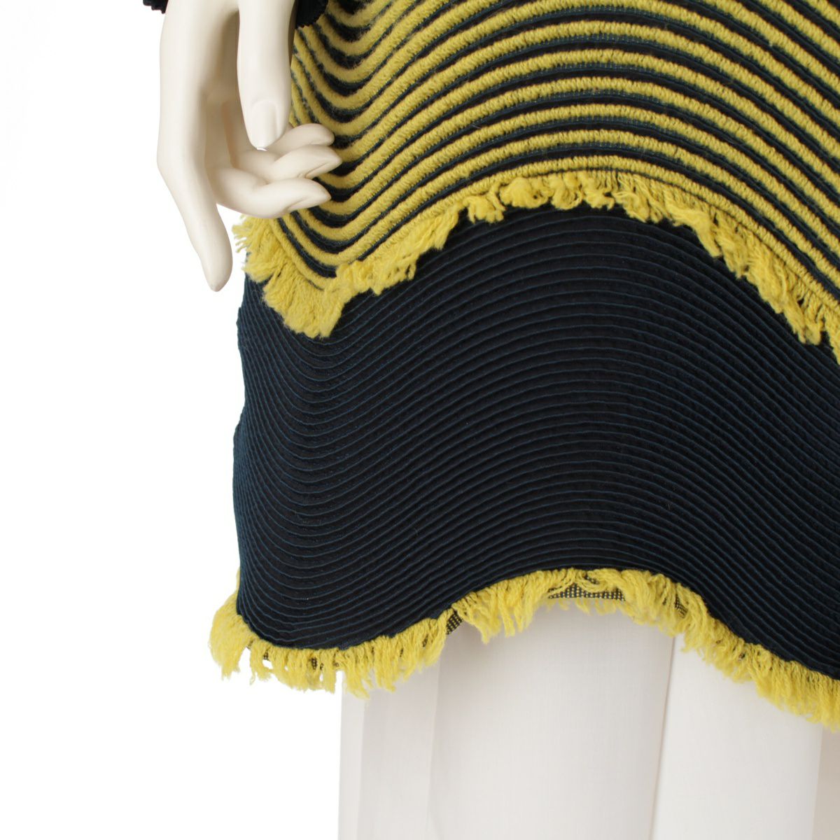 イッセイミヤケ 宮前義之 Yoshiyuki Miyamae 18AW ウール混 3Dスチーム 波プリーツ フリンジ ポンチョ ジャケット コート トップス IM84FD543 イエロー×ダークグリーン 2