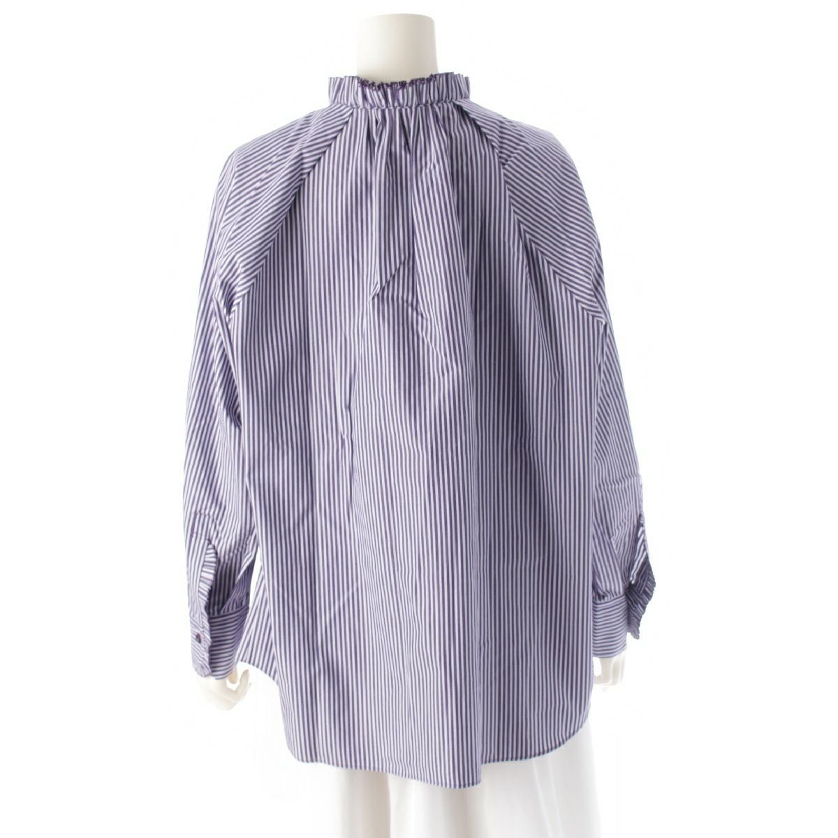 ドゥロワー 22AW winter1 コットン ストライプ フリル ブラウス シャツ トップス 6511-299-1031 パープル ホワイト 36