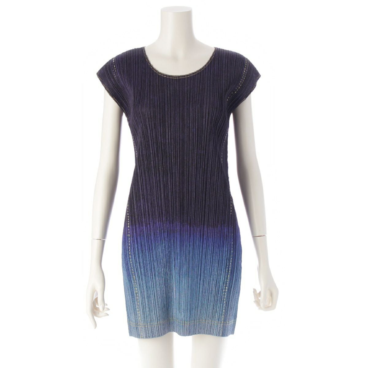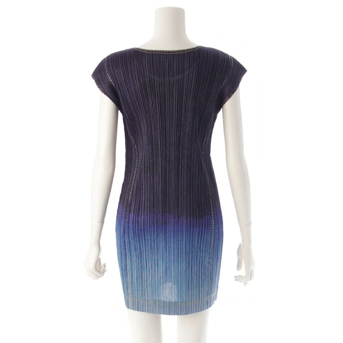 プリーツプリーズ デニム転写 ノースリーブ ワンピース チュニック ドレス PP31-JT687 ブルー 3