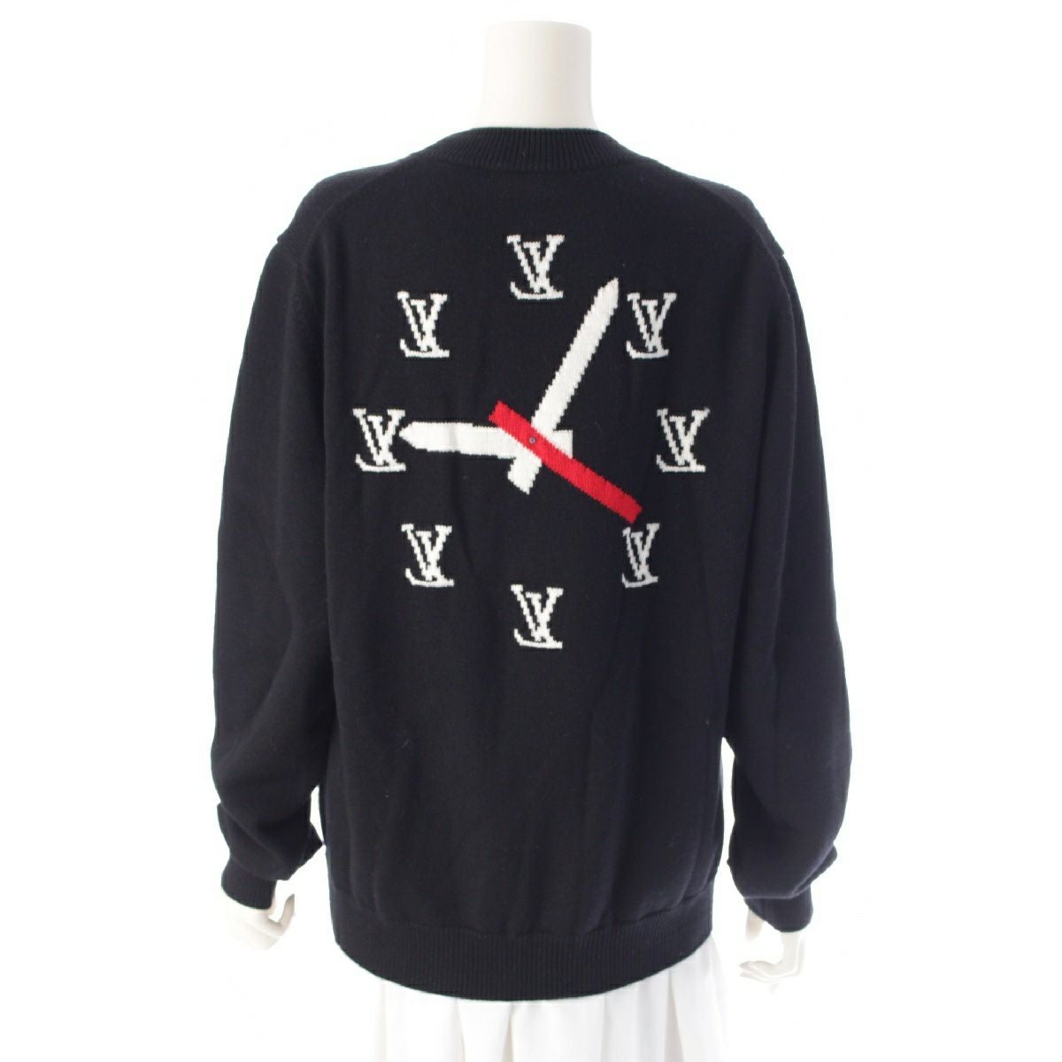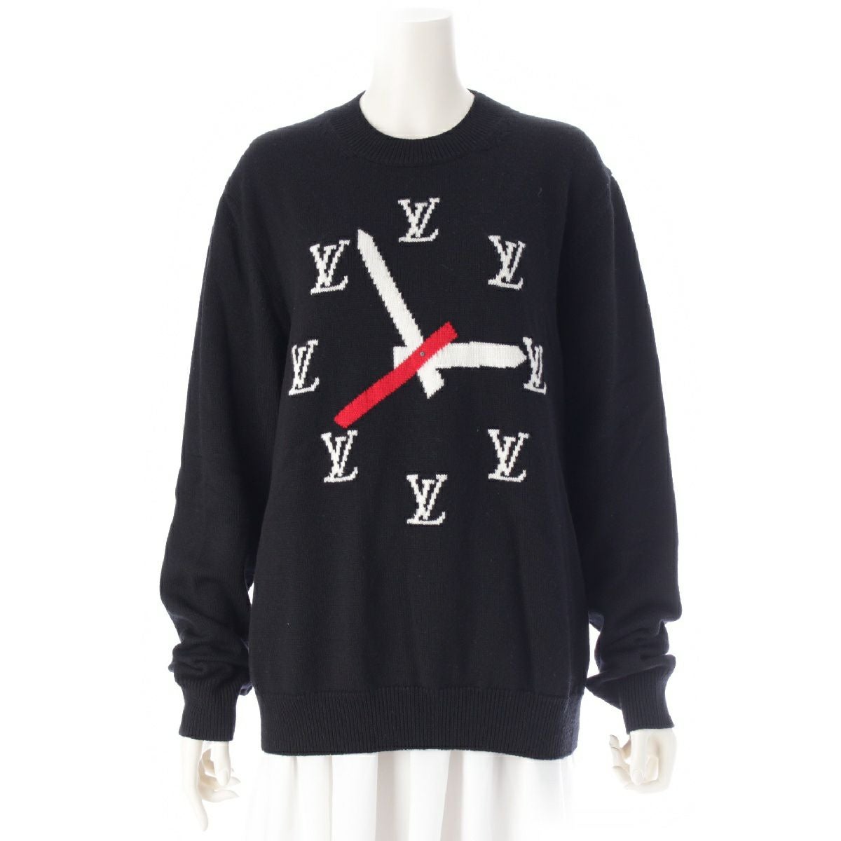 ルイヴィトン 22AW クロックインタルシア LVロゴ 時計デザイン 長袖 クルーネック ニット セーター トップス ブラック M