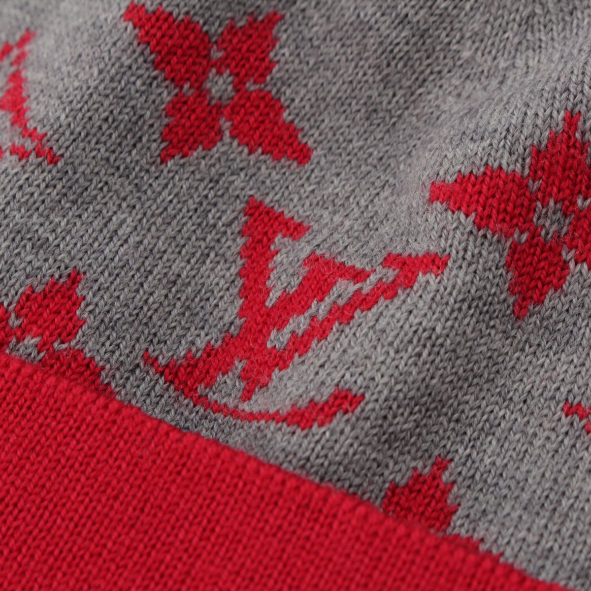 ルイヴィトン 23年 モノグラム ウール LVラビット LVロゴ ビーニー ニット キャップ 帽子 レッド