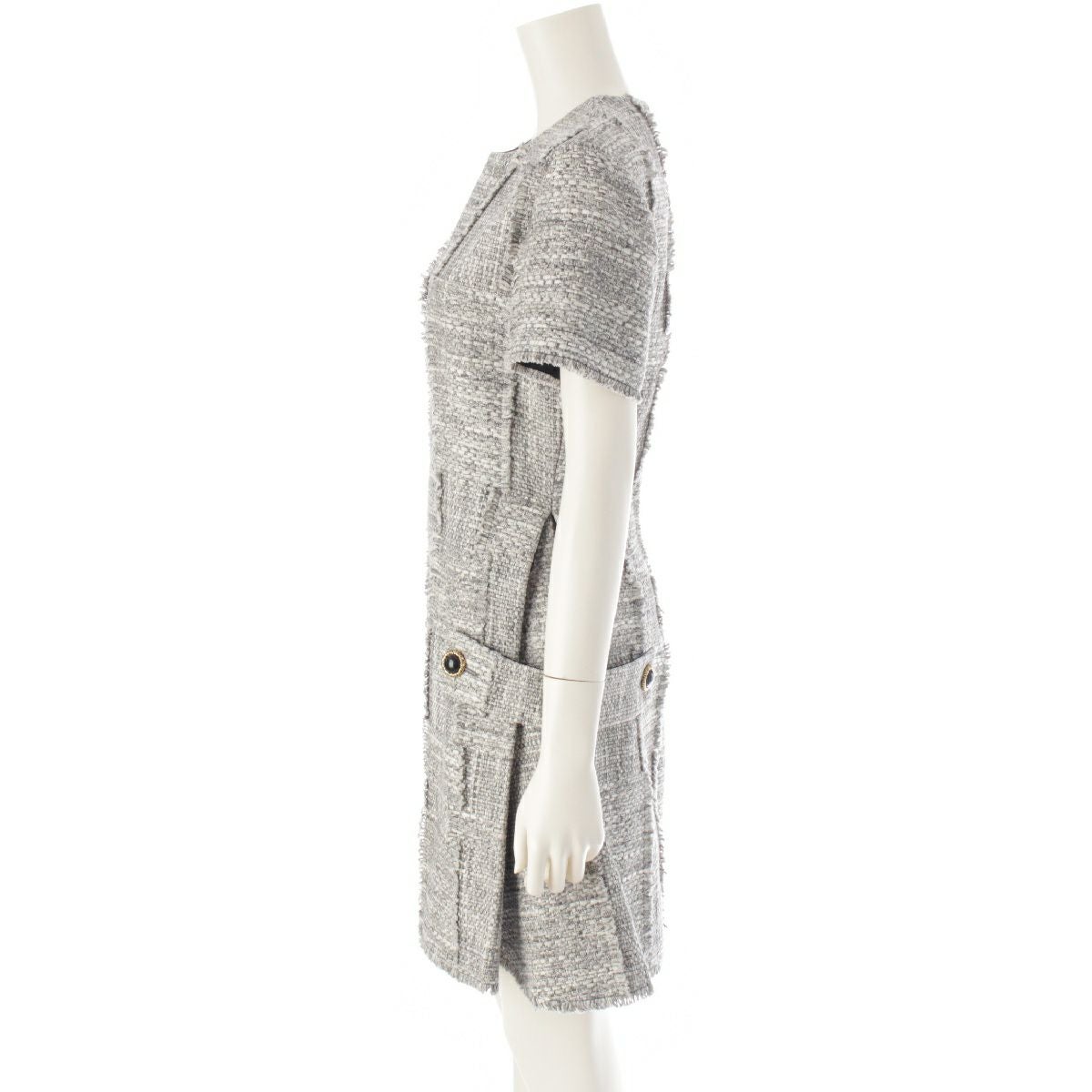 ルイヴィトン 22SS コットン ツイード ショートスリーブ フレア ワンピース スケータードレス RM221B MR2 FMR077 グレー 38