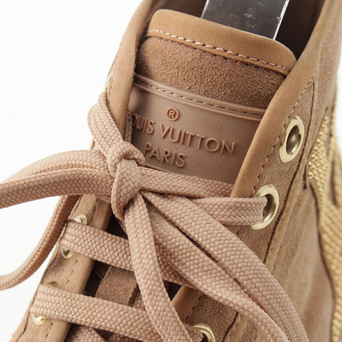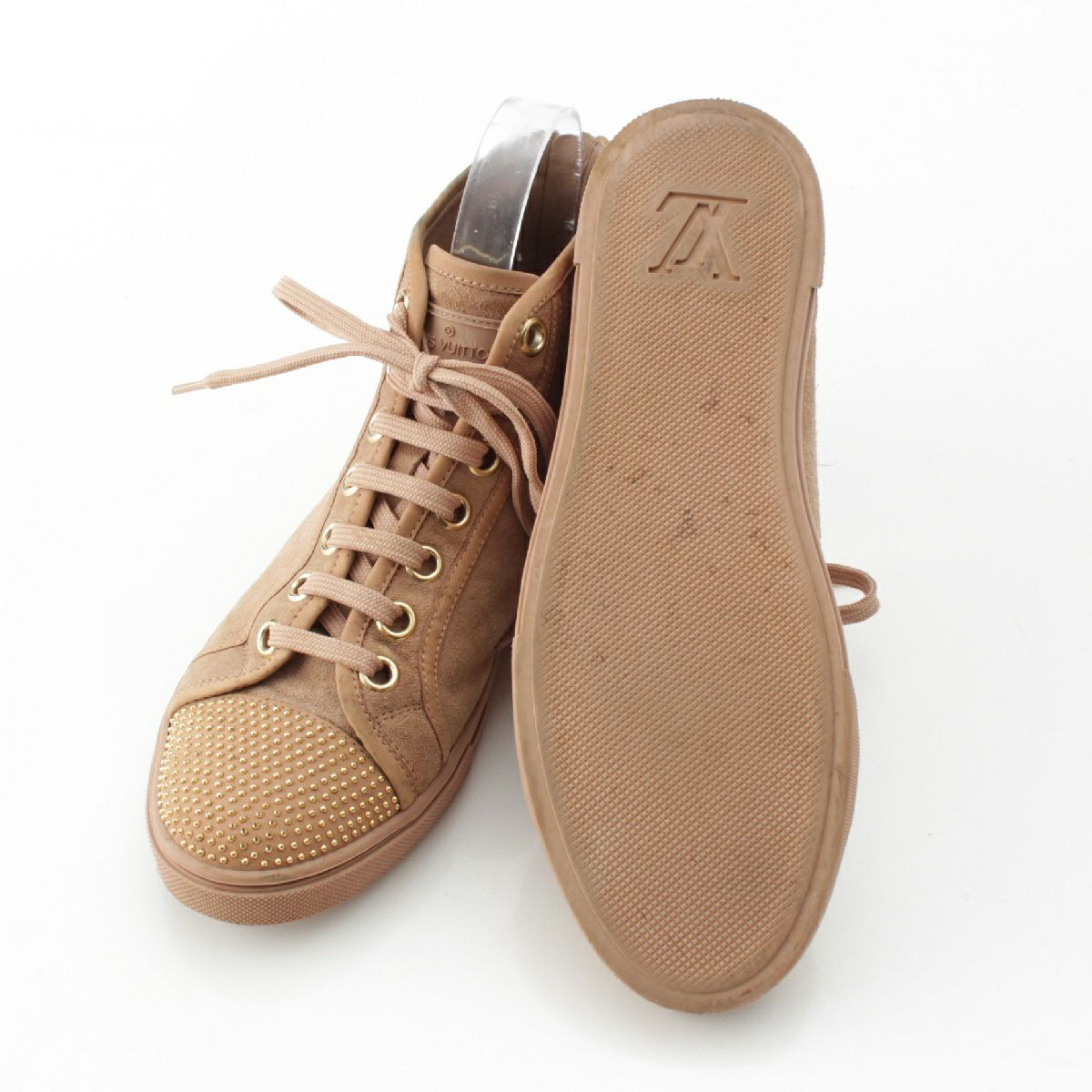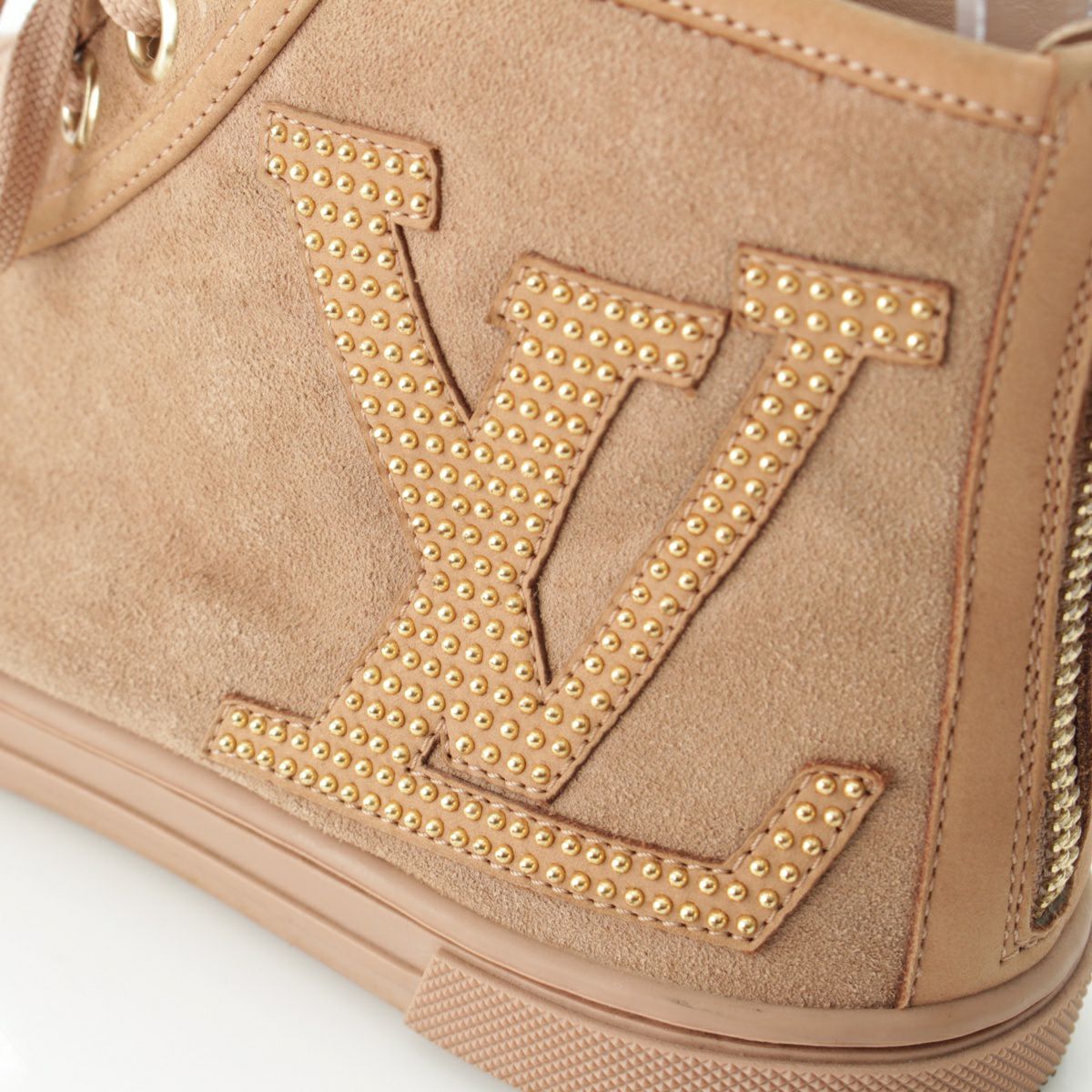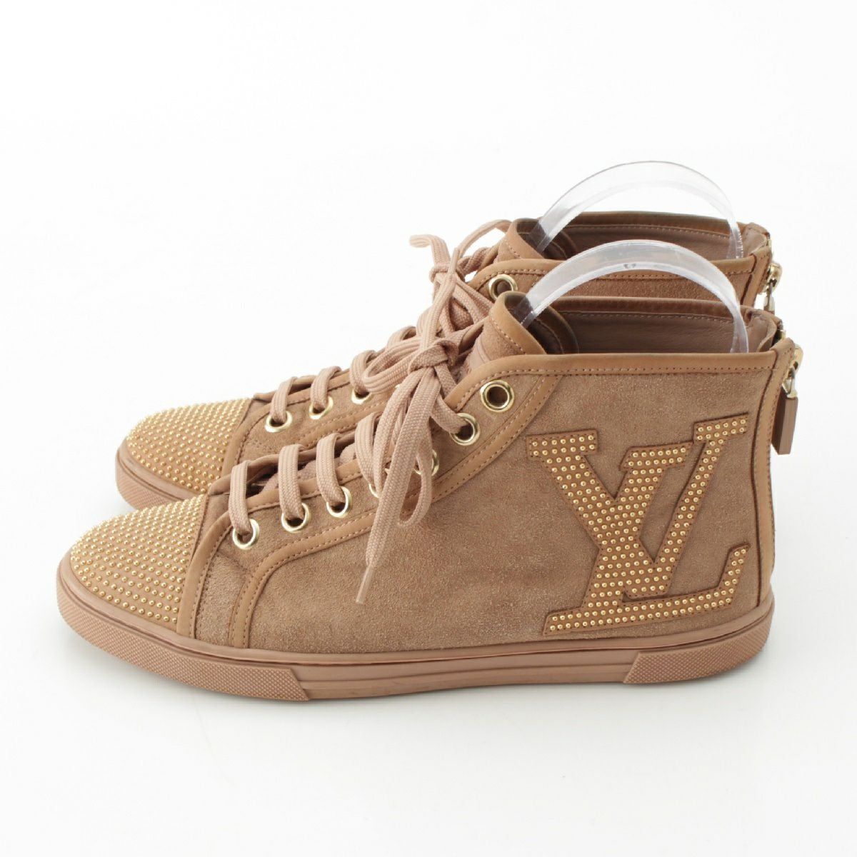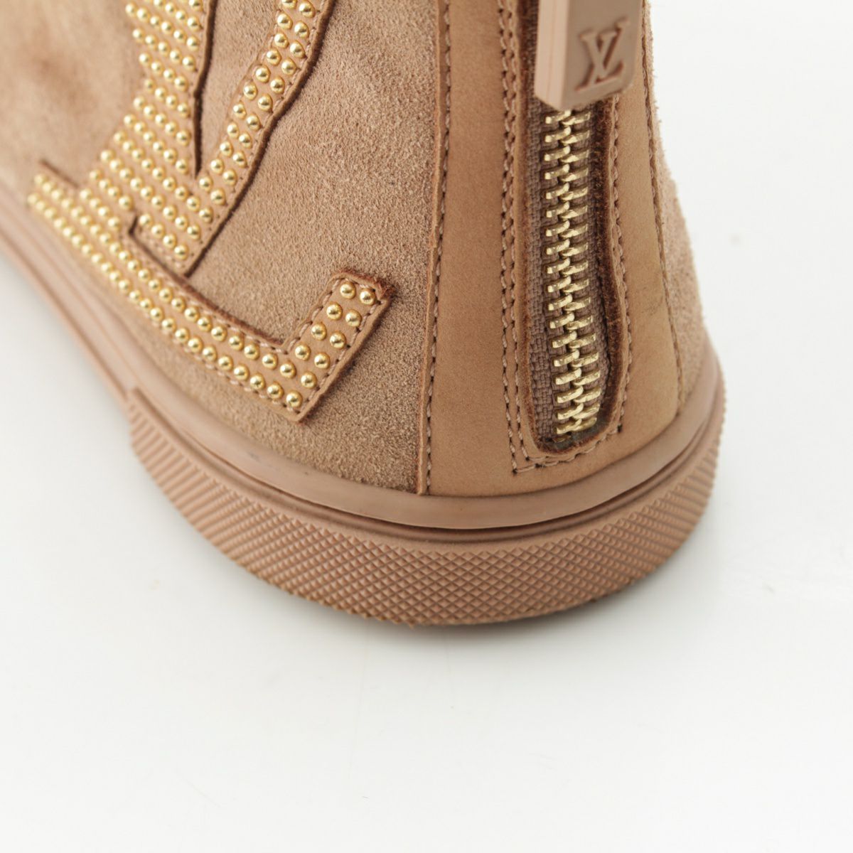 ルイヴィトン スエード LVロゴ スタッズ バックジップ ハイカット スニーカー シューズ ベージュ 36