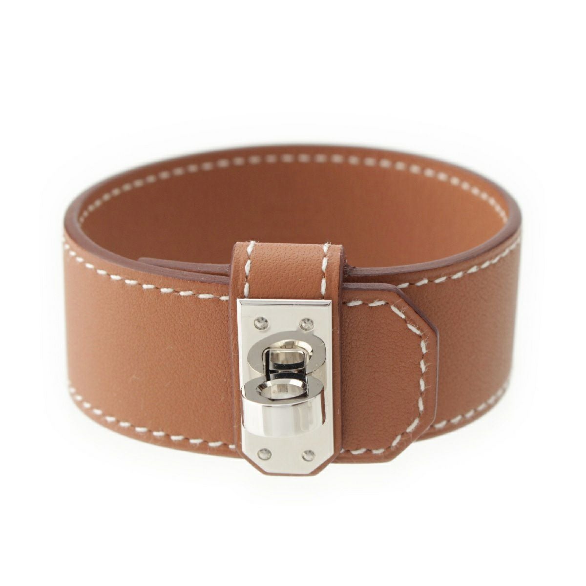 エルメス U刻印 ケリーツイストPM レザー ブレスレット バングル アクセサリー ブラウン シルバー金具