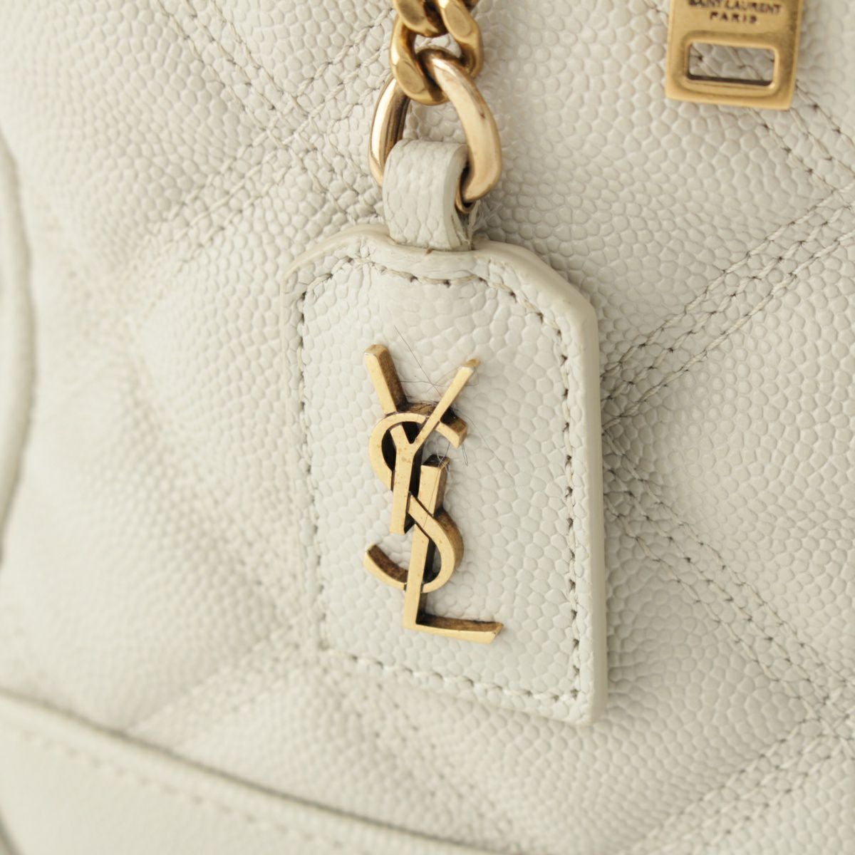 サンローラン レザー YSLロゴ キルトステッチ バニティ チェーン ショルダーバッグ 649779 ホワイト ゴールド
