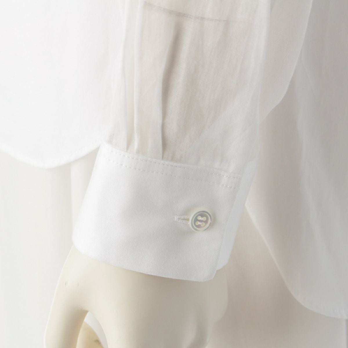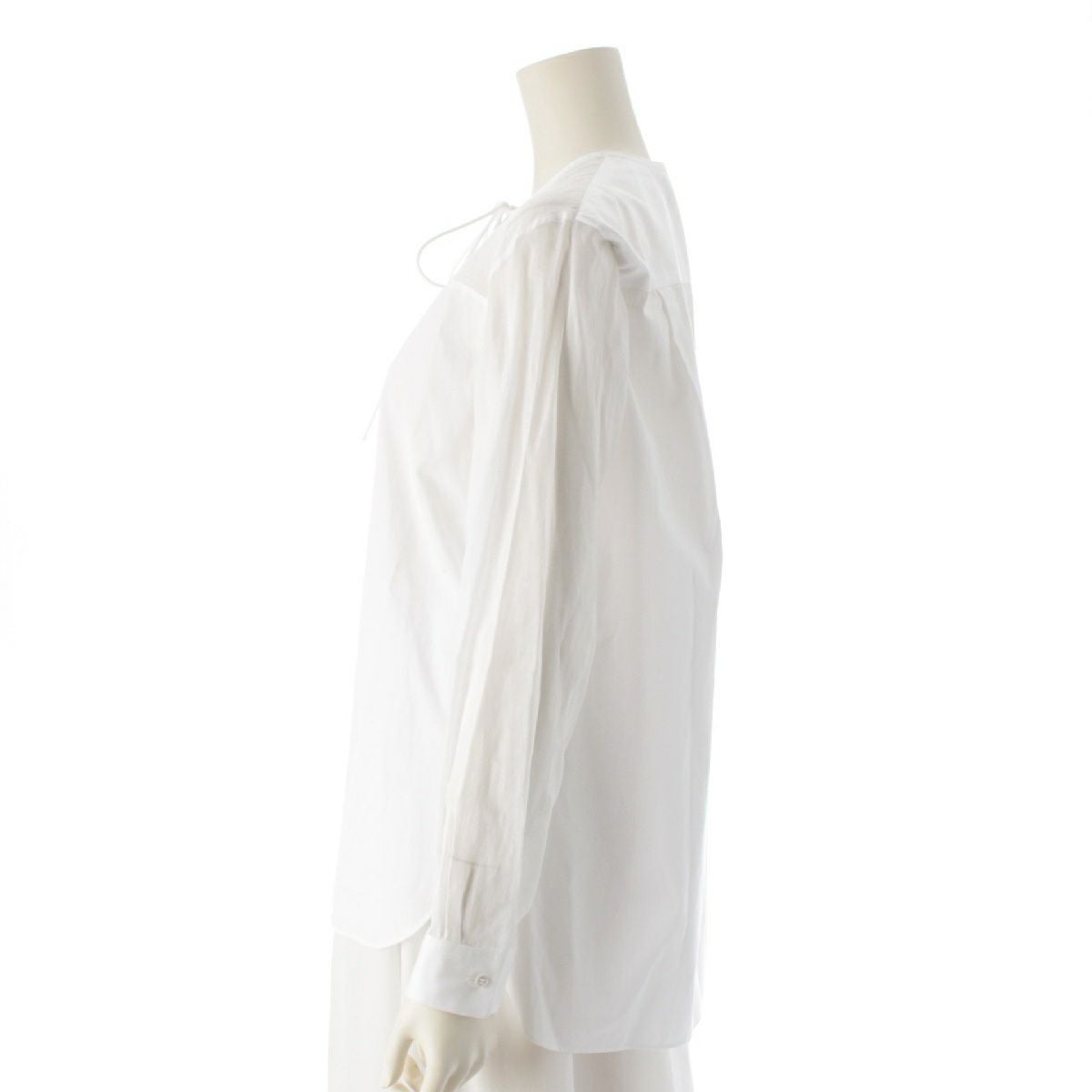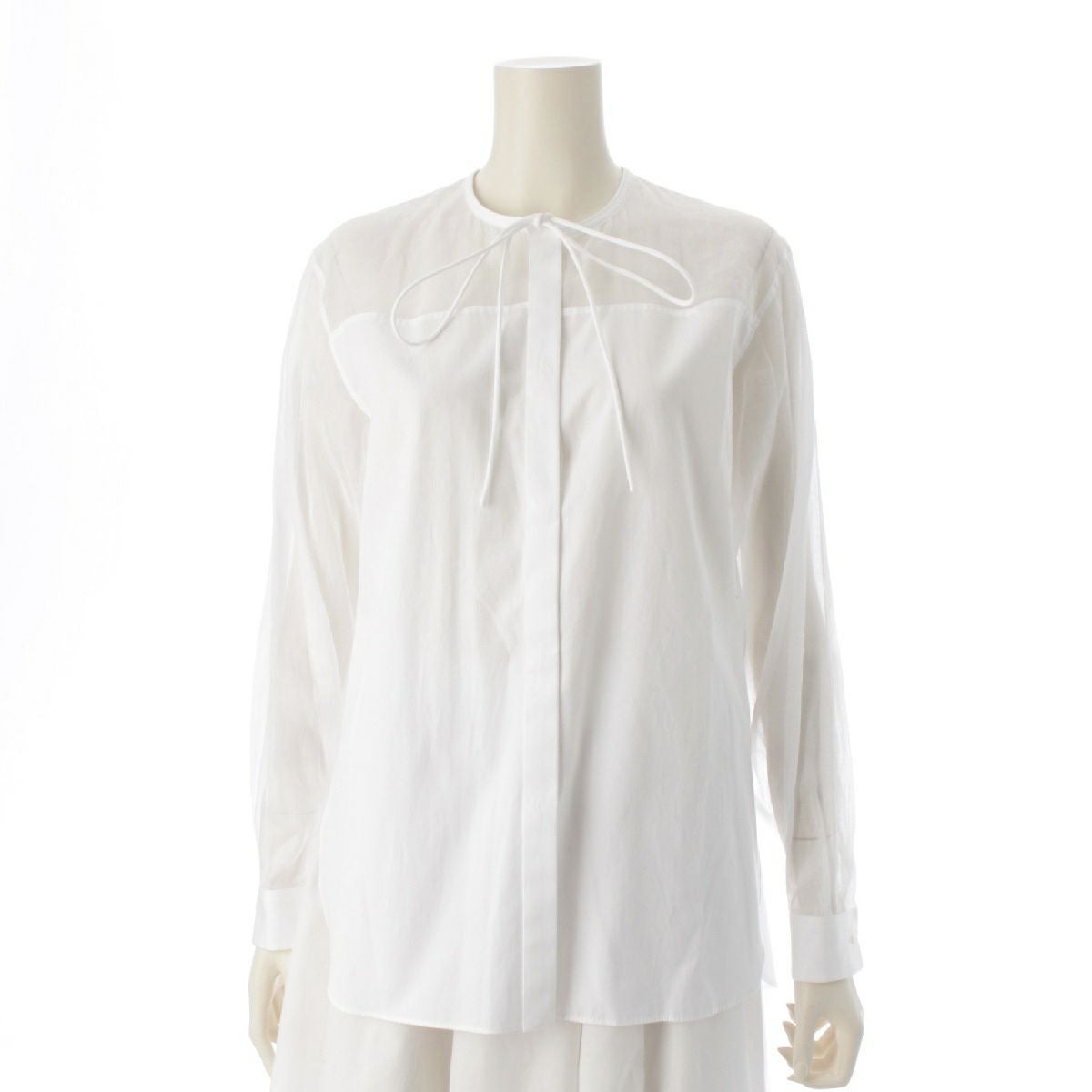 ドゥロワー 23AW コットン シアー切替 リボン ブラウス 長袖シャツ トップス 6521-299-1123 ホワイト 36