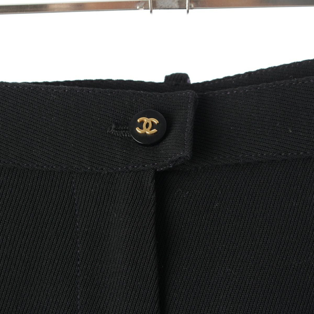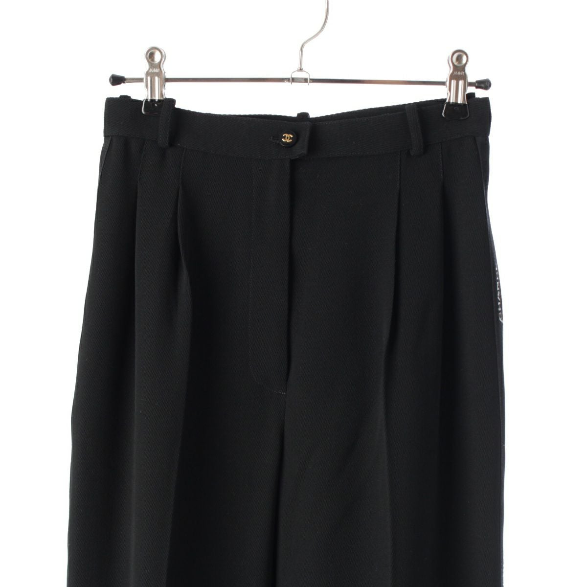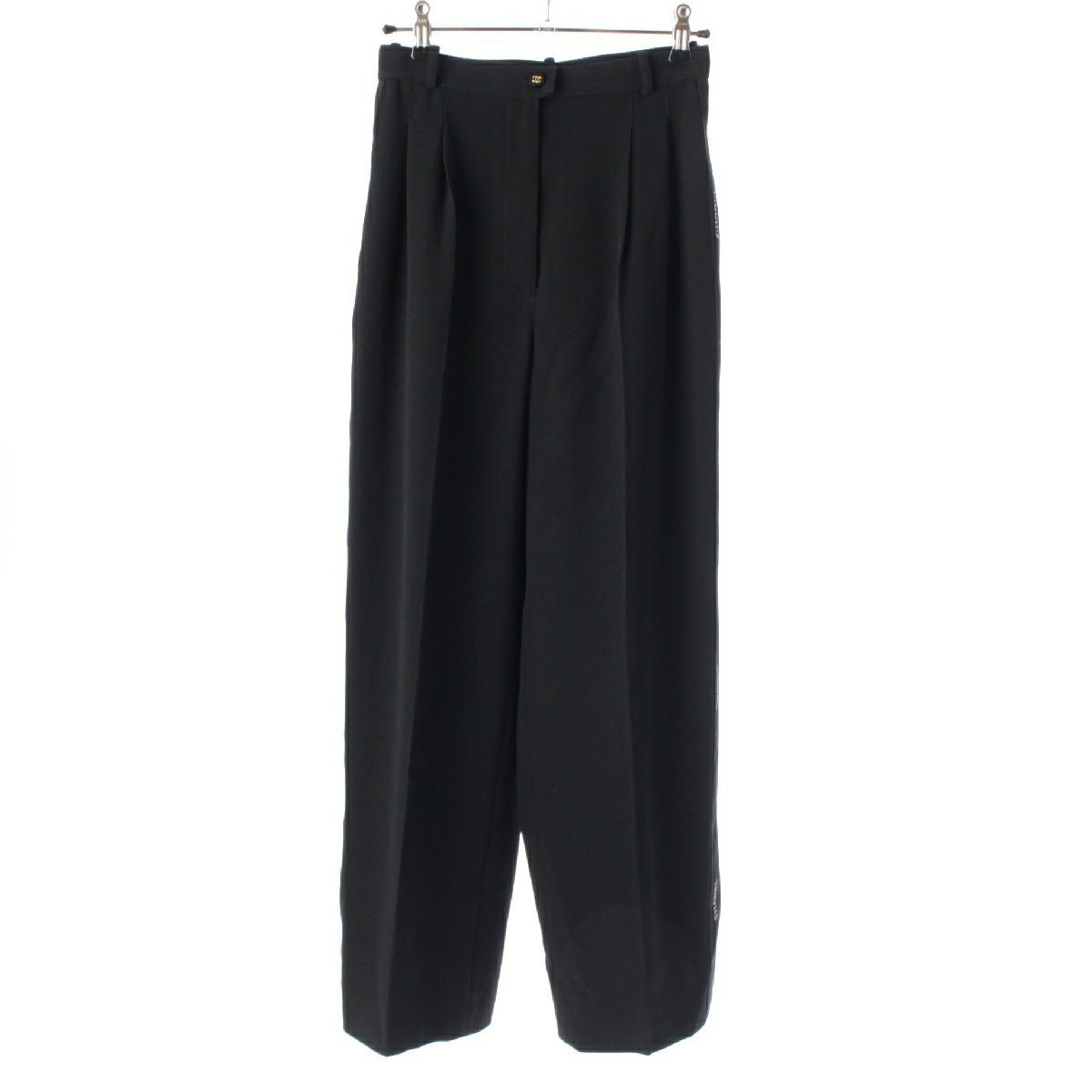 シャネル ウール 紙タグ ココボタン サイドライン ロゴライン パンツ ワイド ボトムス P05760 ブラック 36