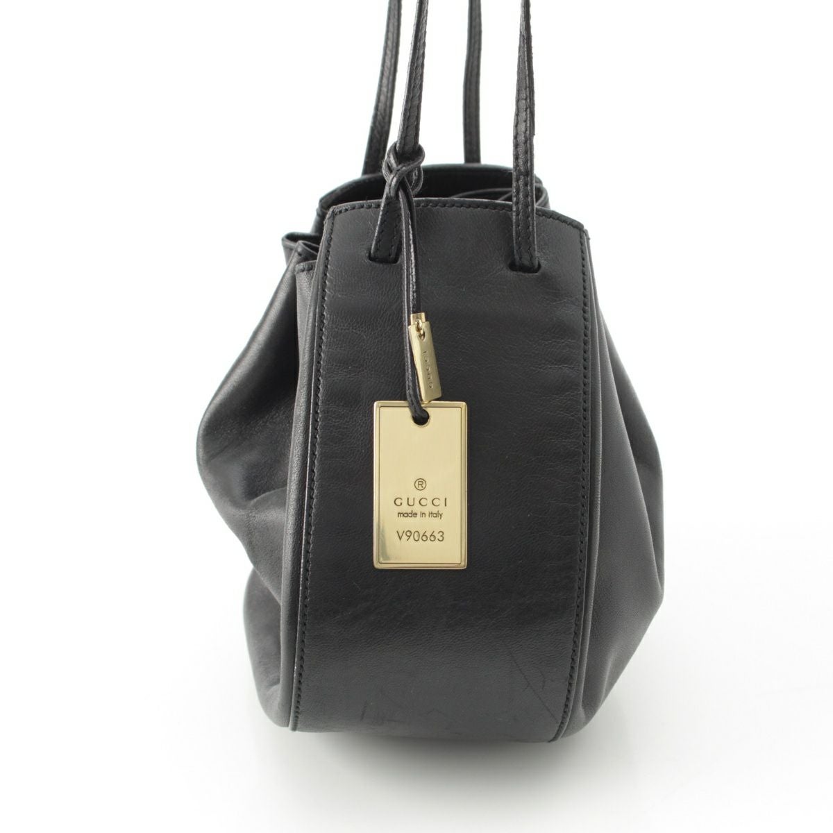 グッチ レザー ロゴプレート付き 巾着型 ショルダーバッグ 90663 ブラック