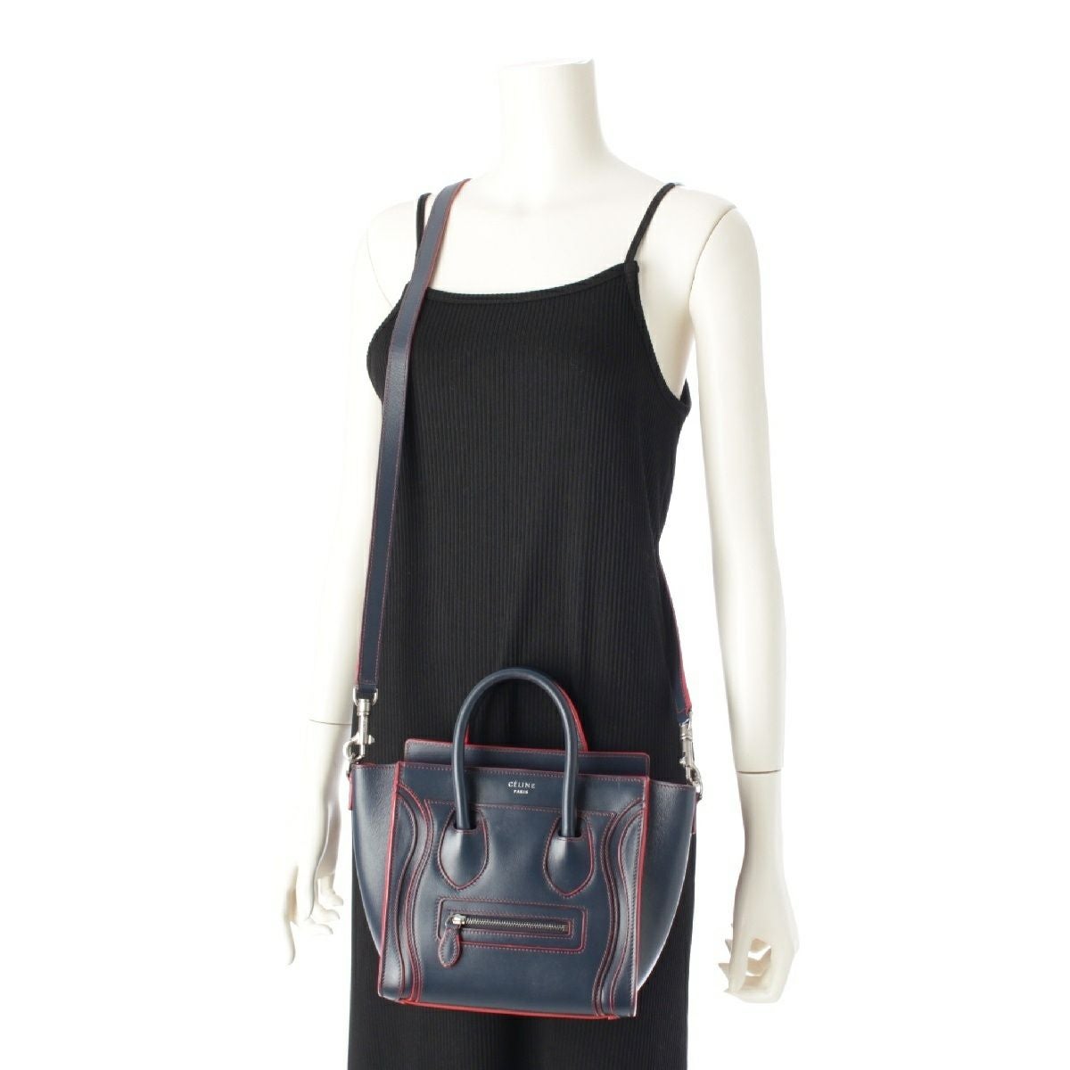 セリーヌ ラゲージ ナノショッパー レザー 2way ショルダー ハンドバッグ 180443AOY.070C ネイビー×レッド