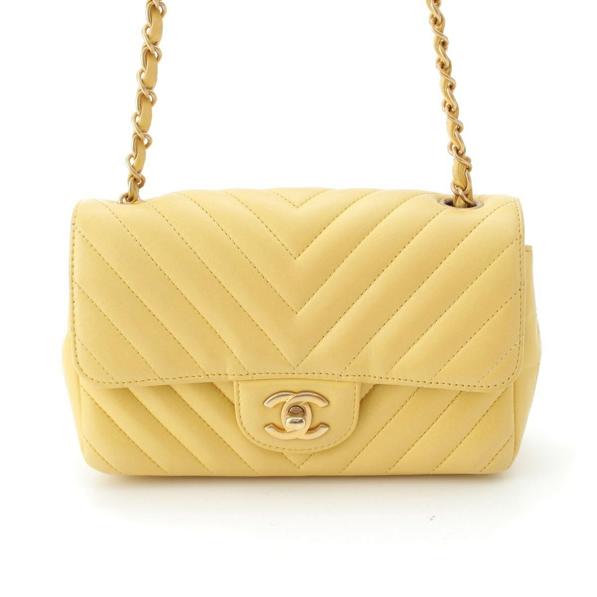 シャネル Vステッチ シェブロン ラムスキン チェーン ショルダーバッグ イエロー