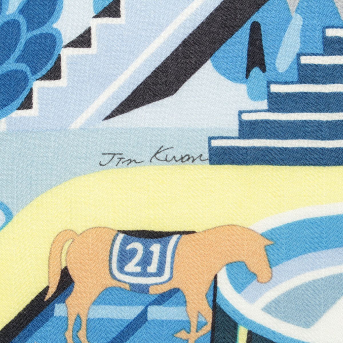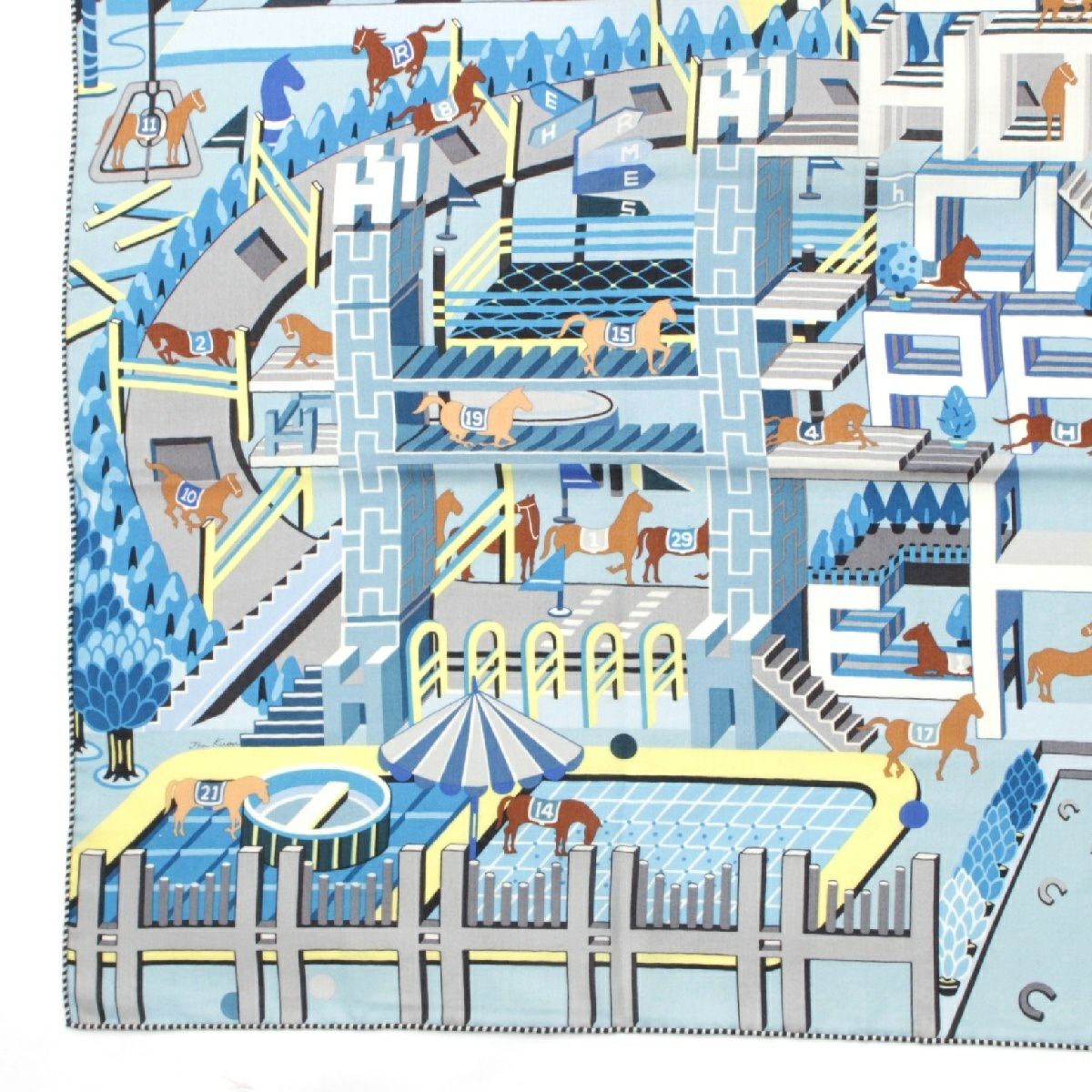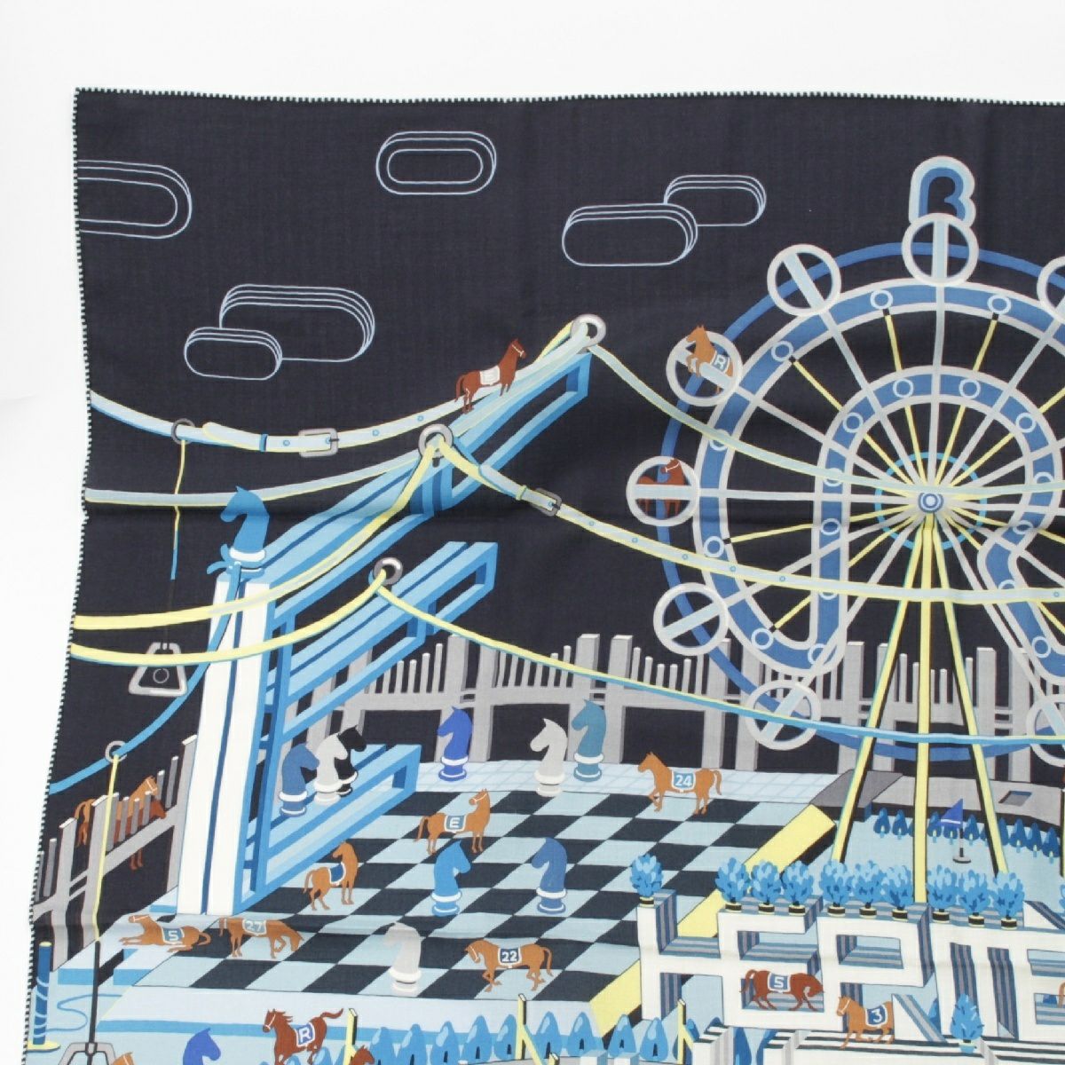 エルメス カレジェアン カシミヤ シルク ホースクラブ HORSE CLUB 大判 スカーフ 馬 アクセサリー 23SS ブルー