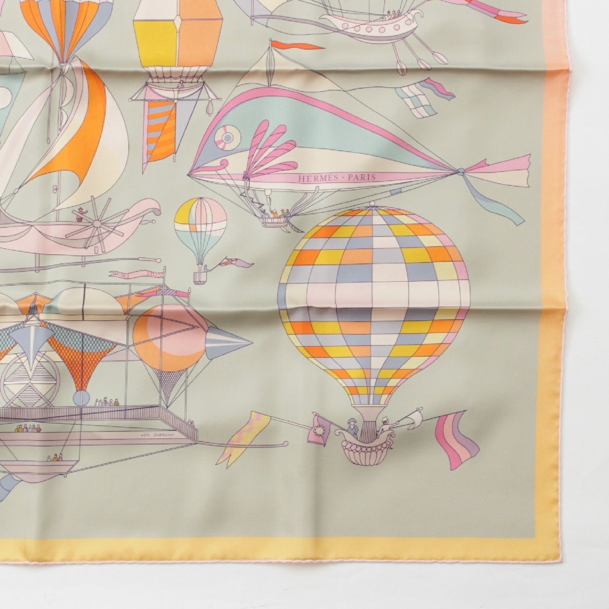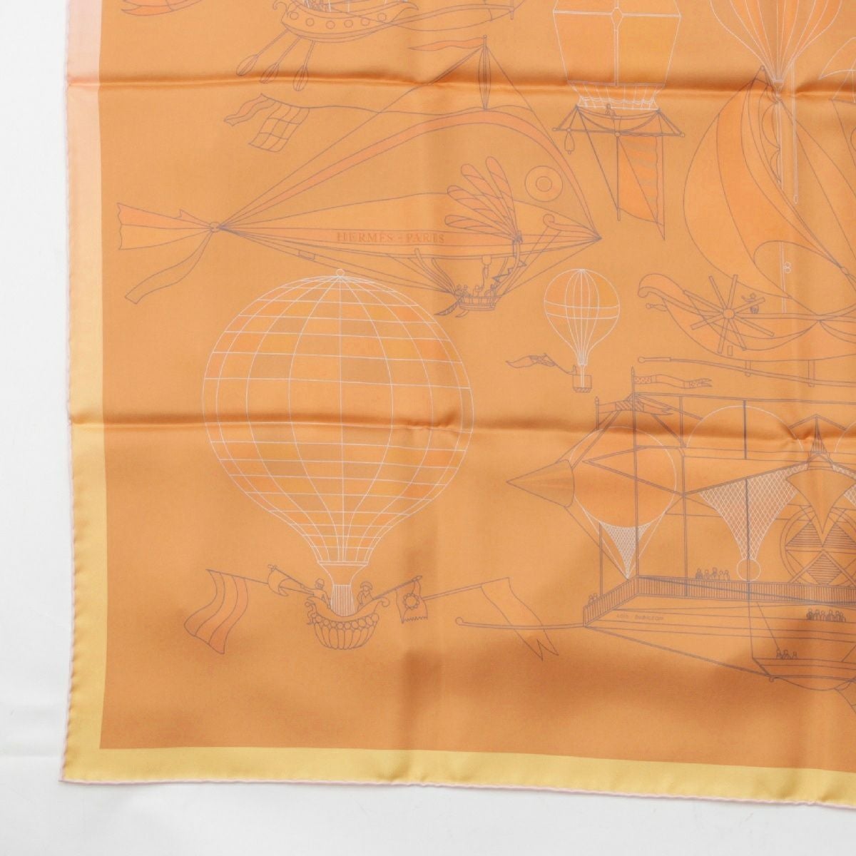 エルメス シルク カレ90 ダブルフェイス LES FOLIES DU CIEL 大空の狂気 スカーフ グレー×オレンジ