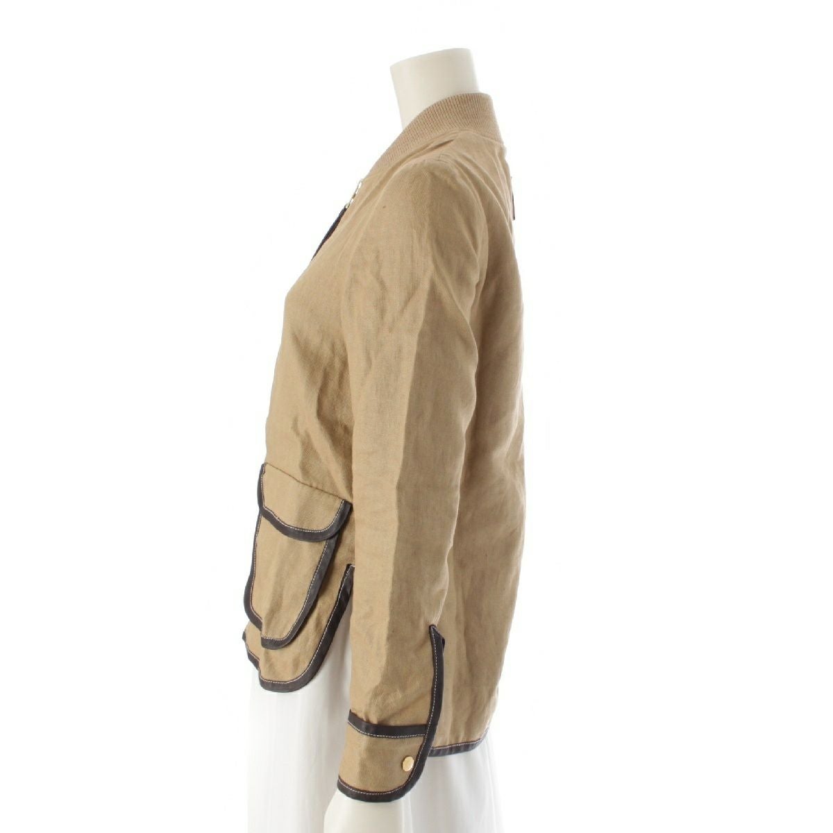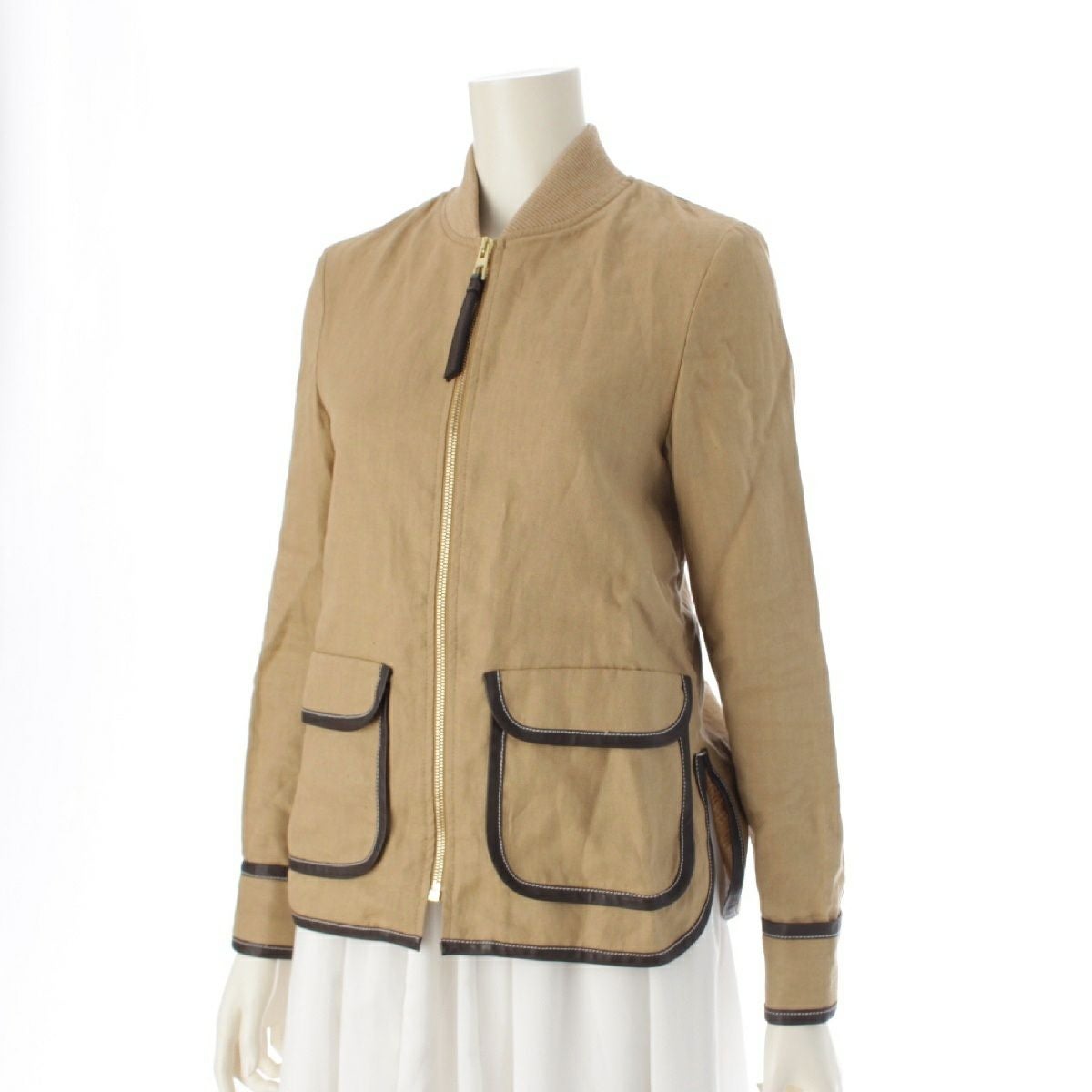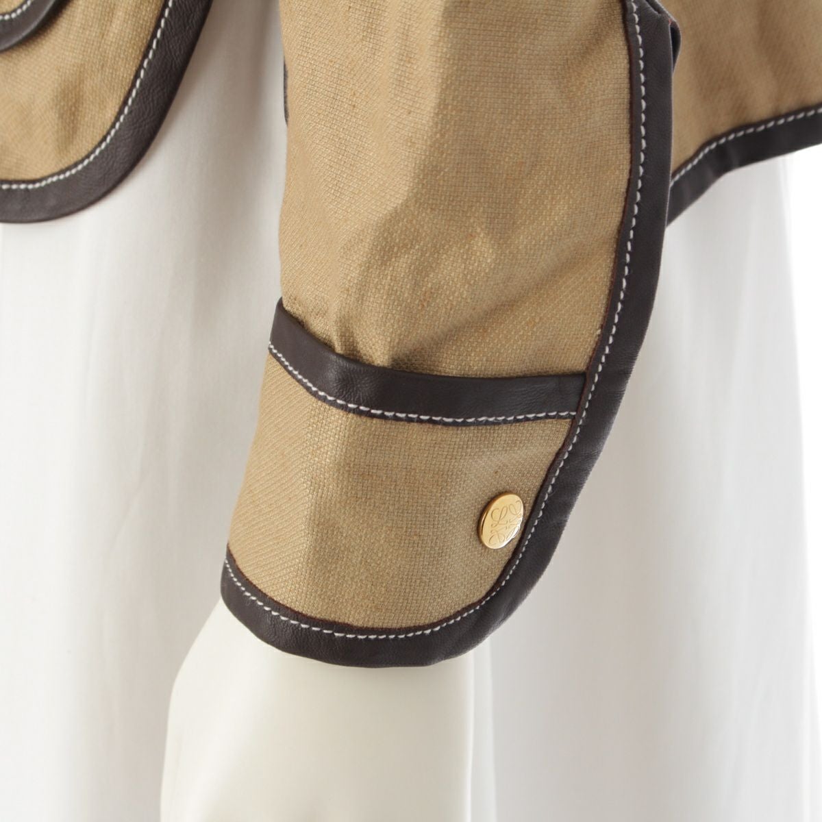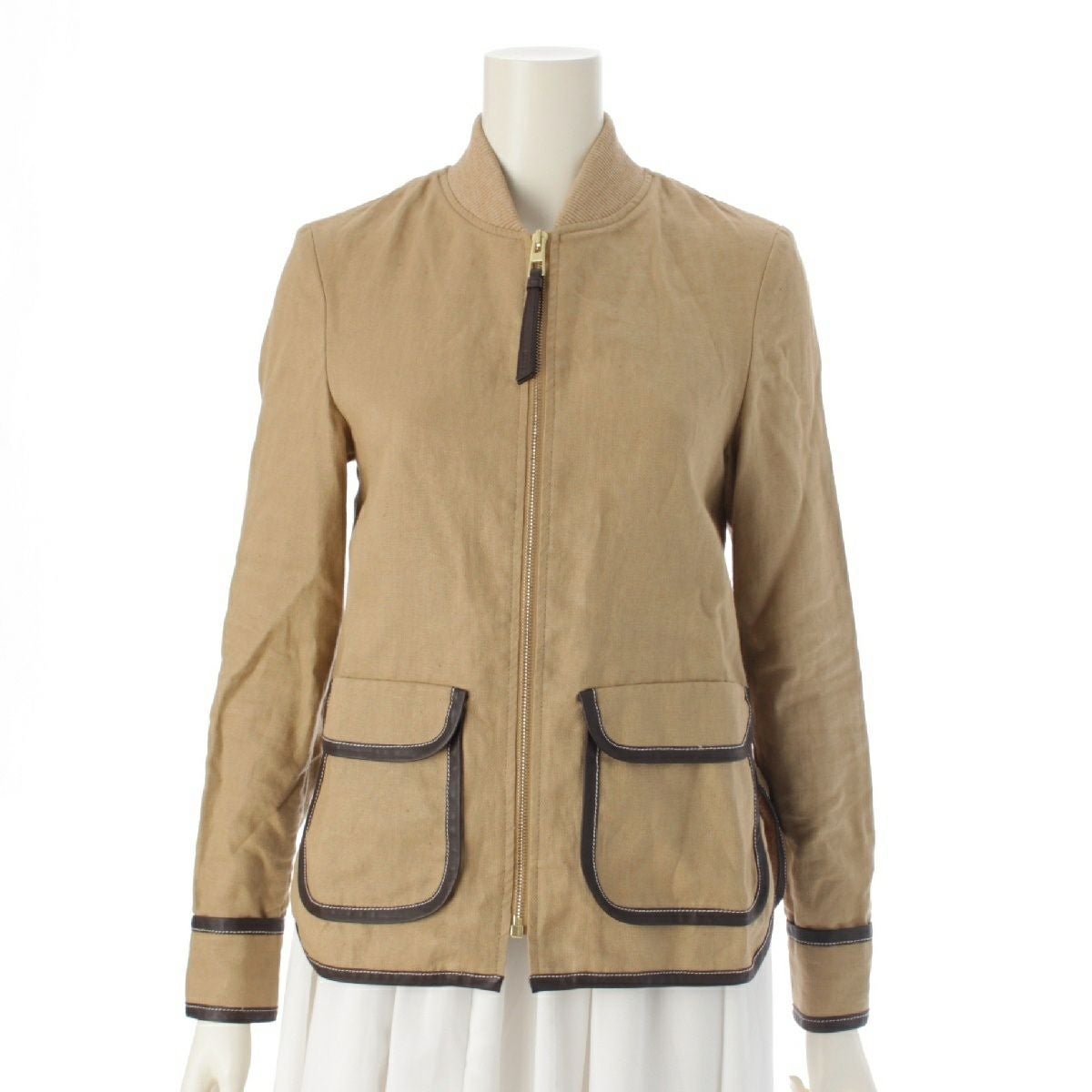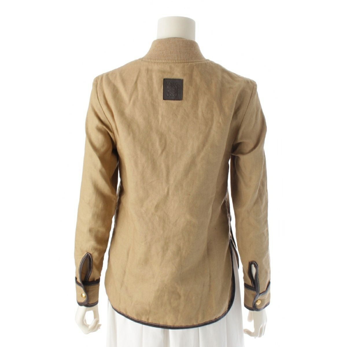 ロエベ リネン アナグラム ジップアップ ブルゾン ジャケット アウター ベージュ 32