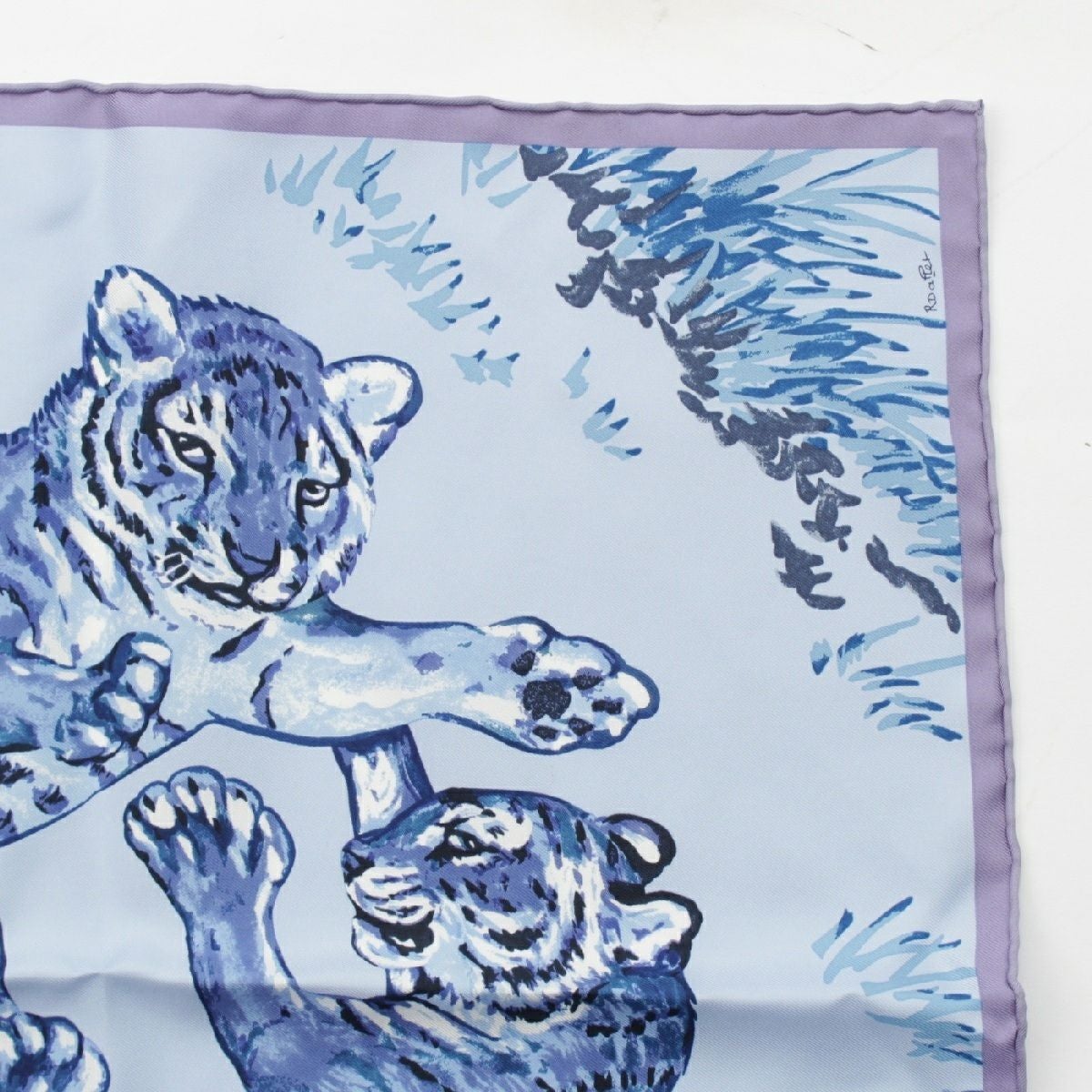 エルメス カレ45 シルク Les Tigreaux トラ 虎 スカーフ ハンカチ プチ ミニ ブルー