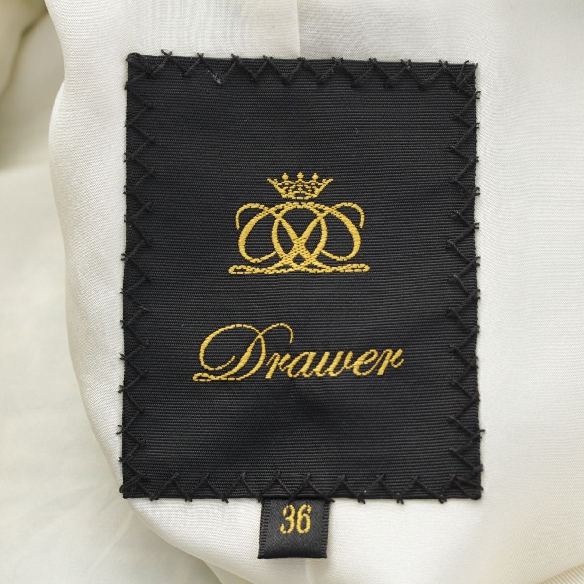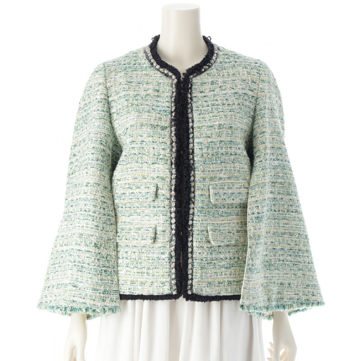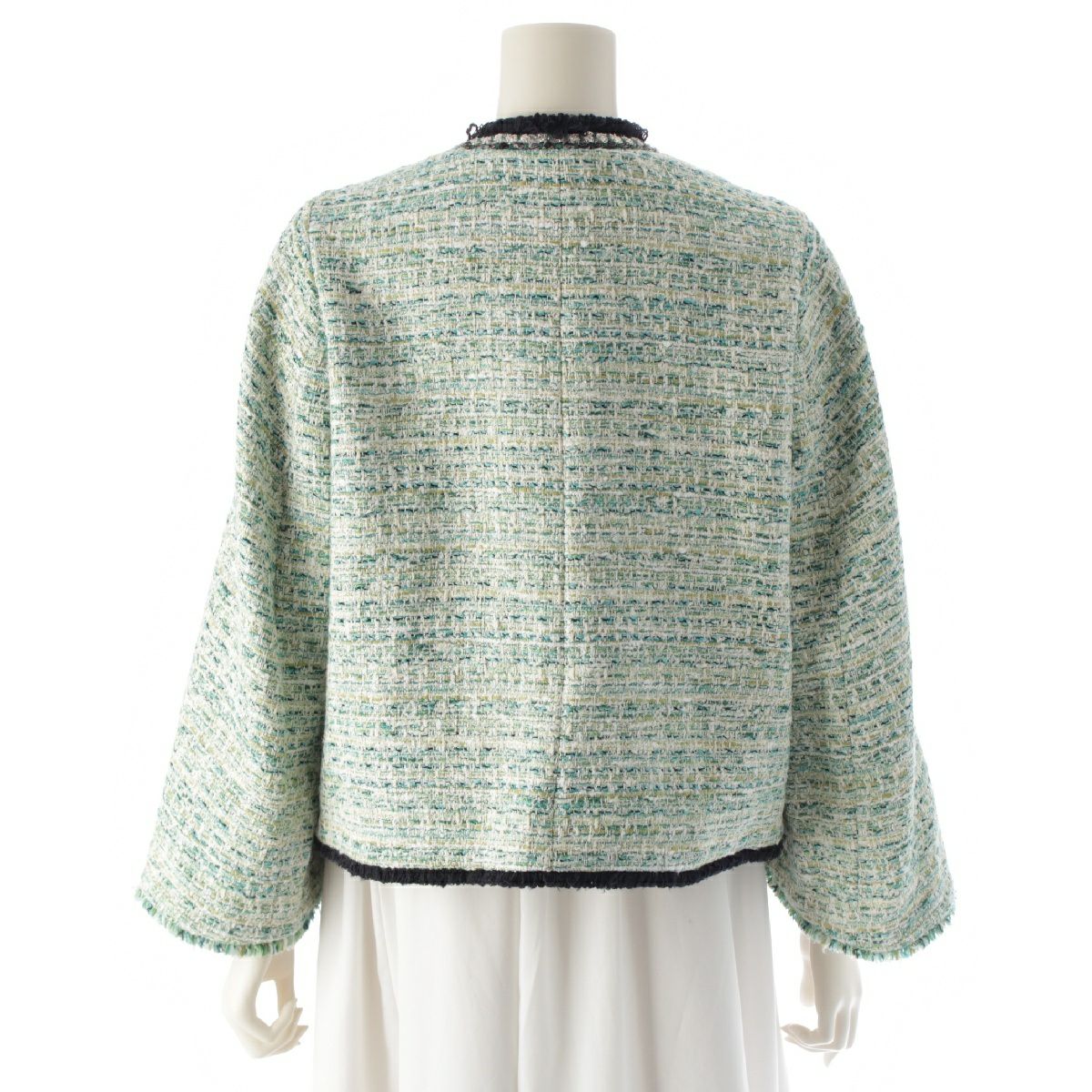 ドゥロワー 23SS コットン ツイード ビジュー ノーカラー ジャケット ポンチョ ケープコート トップス 6522-299-0772 ホワイト グリーン 36