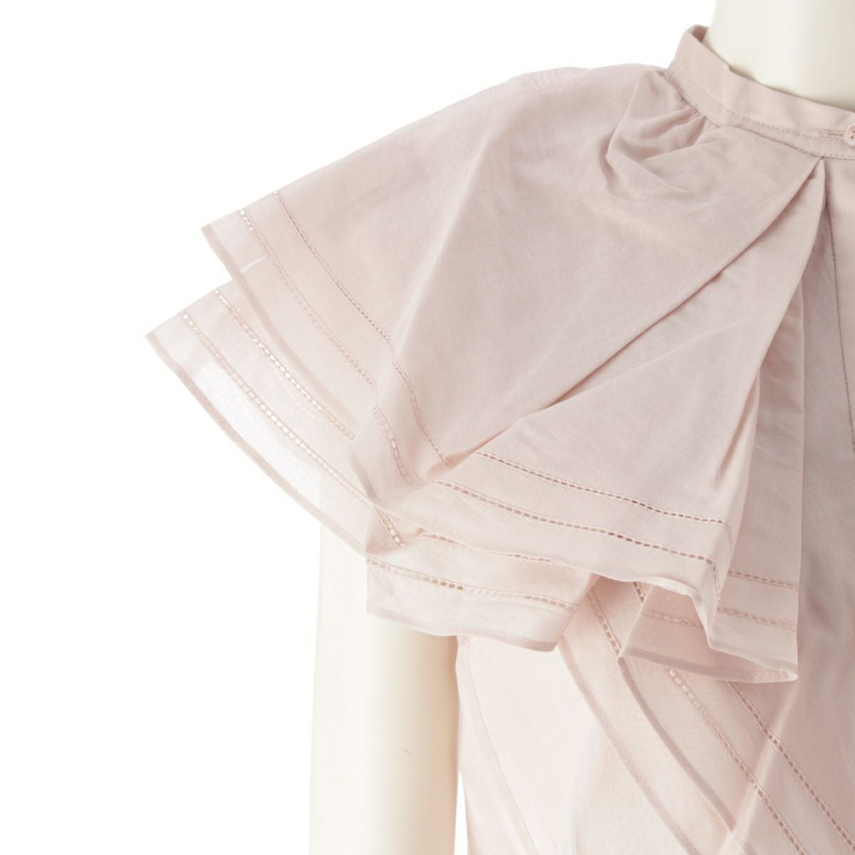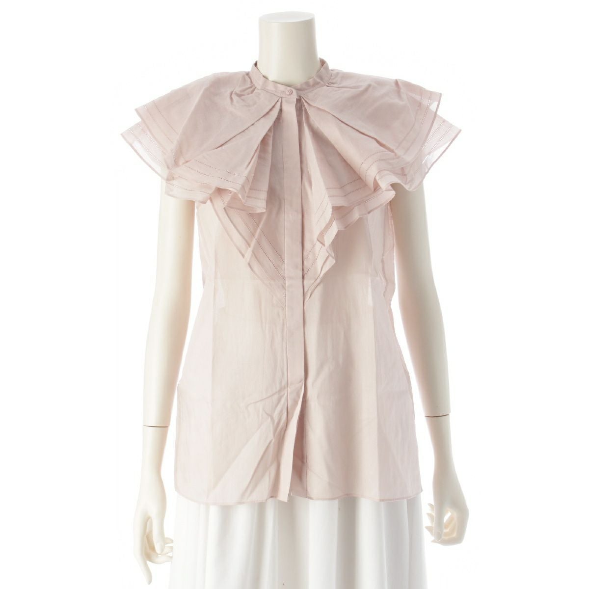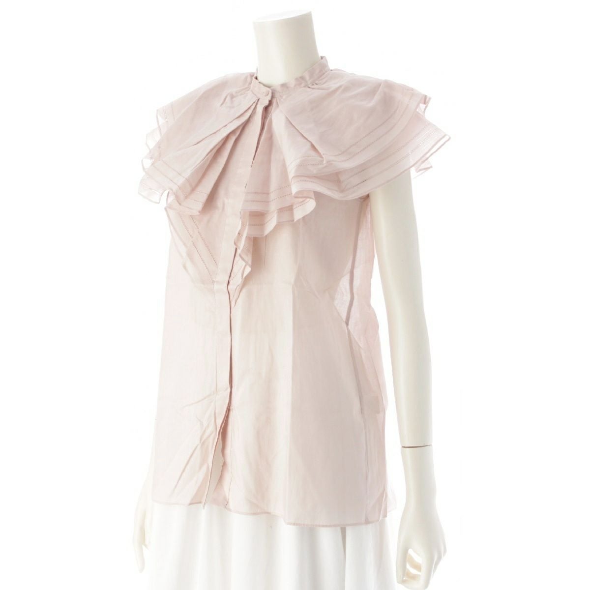 ドゥロワー コットン ボイル フリル ノースリーブ ブラウス シャツ トップス ピンクベージュ 36