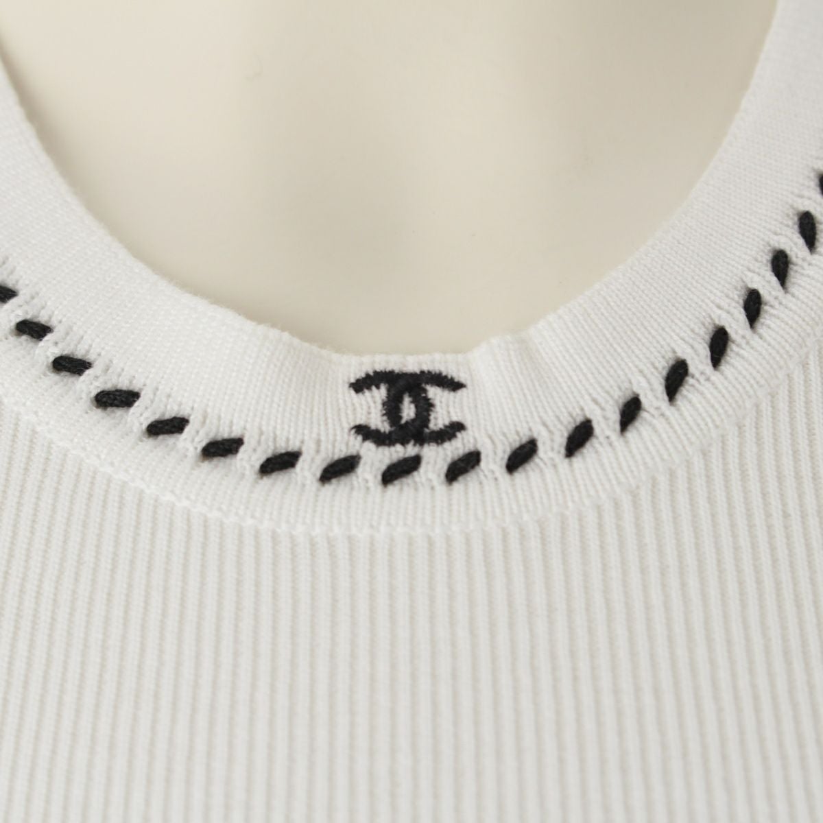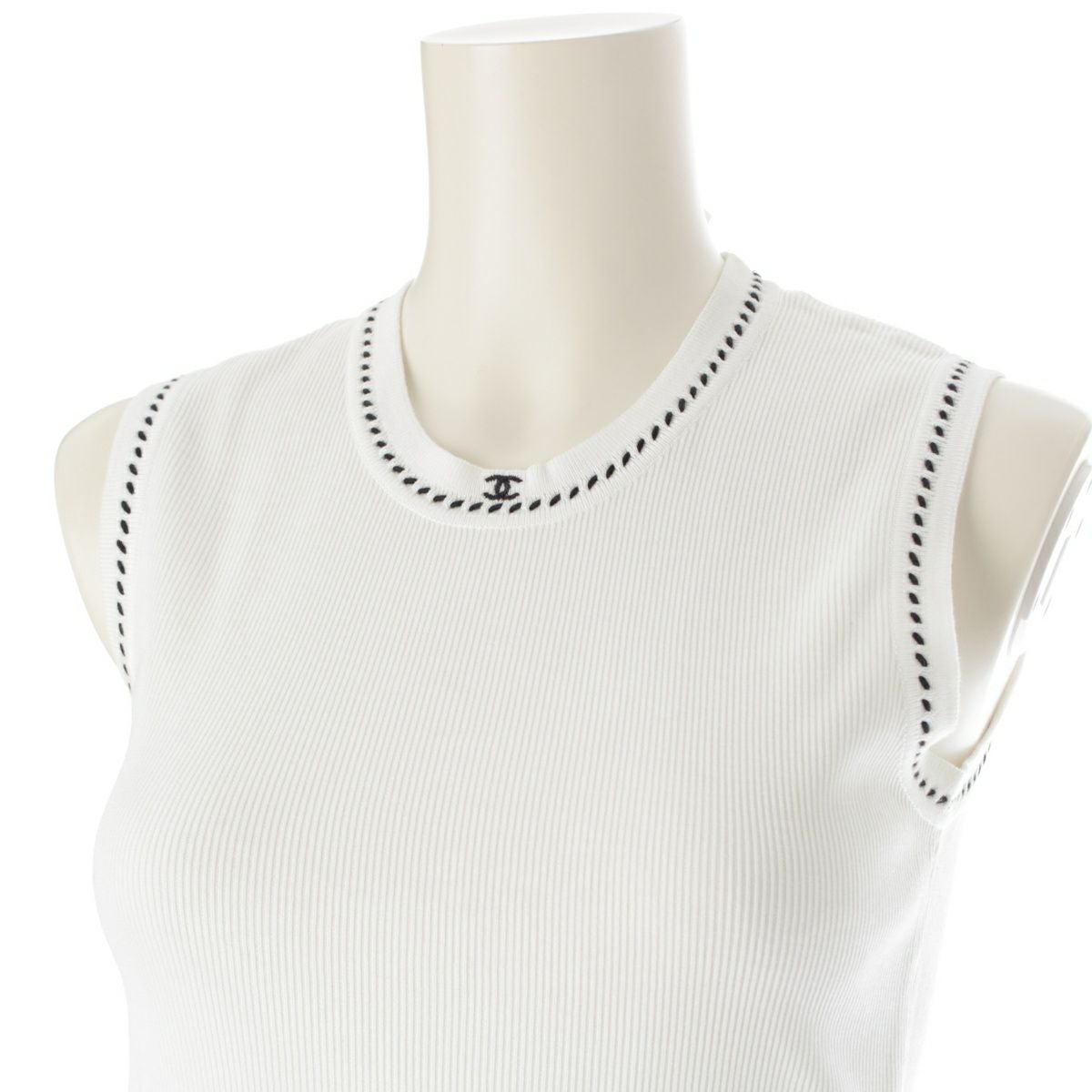 シャネル 96P コットン ココマーク ノースリーブ カットソー トップス ベスト ホワイト 36