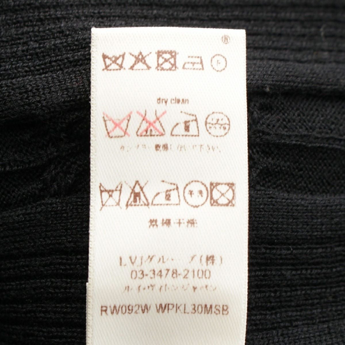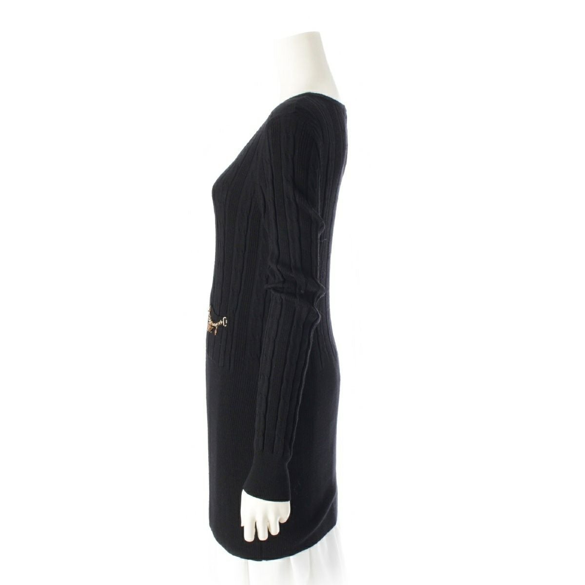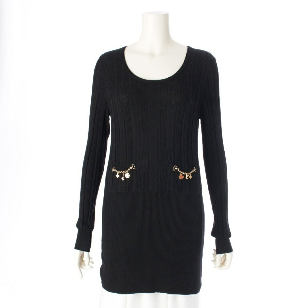 ルイヴィトン ウール LV モノグラム ロゴチャーム ケーブル編み リブニット ワンピース トップス セーター RW092W WRKL30MSB ブラック M