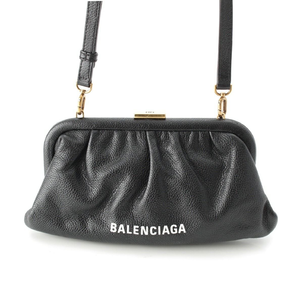 バレンシアガ CLOUD XS レザー ロゴ がま口 2way クラッチ ショルダーバッグ クロスボディ 618895 ブラック