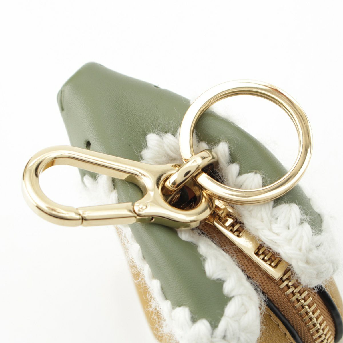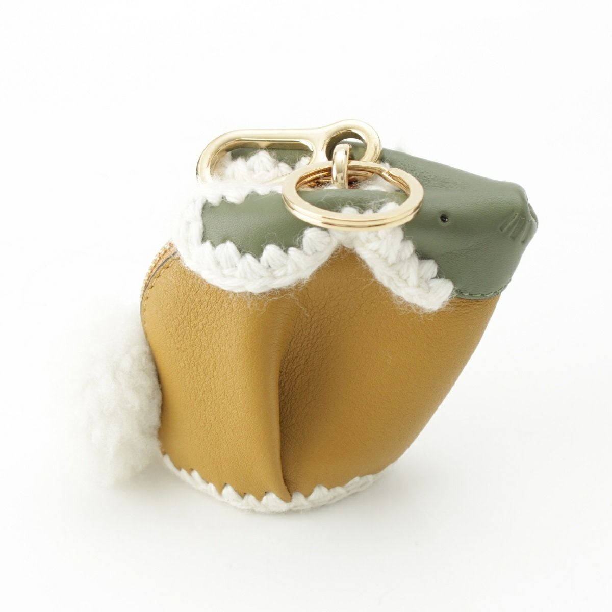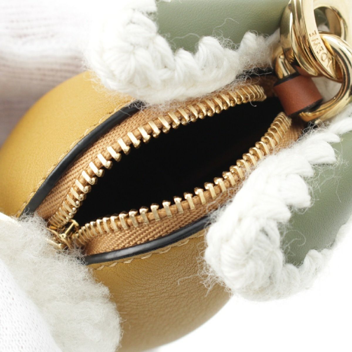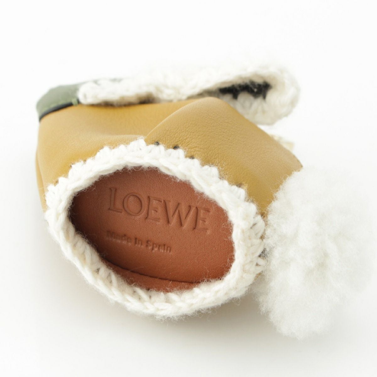ロエベ レザー ボア ラビット ウサギ キーリング ポーチ チャーム カーキ イエローオーカー アイボリー