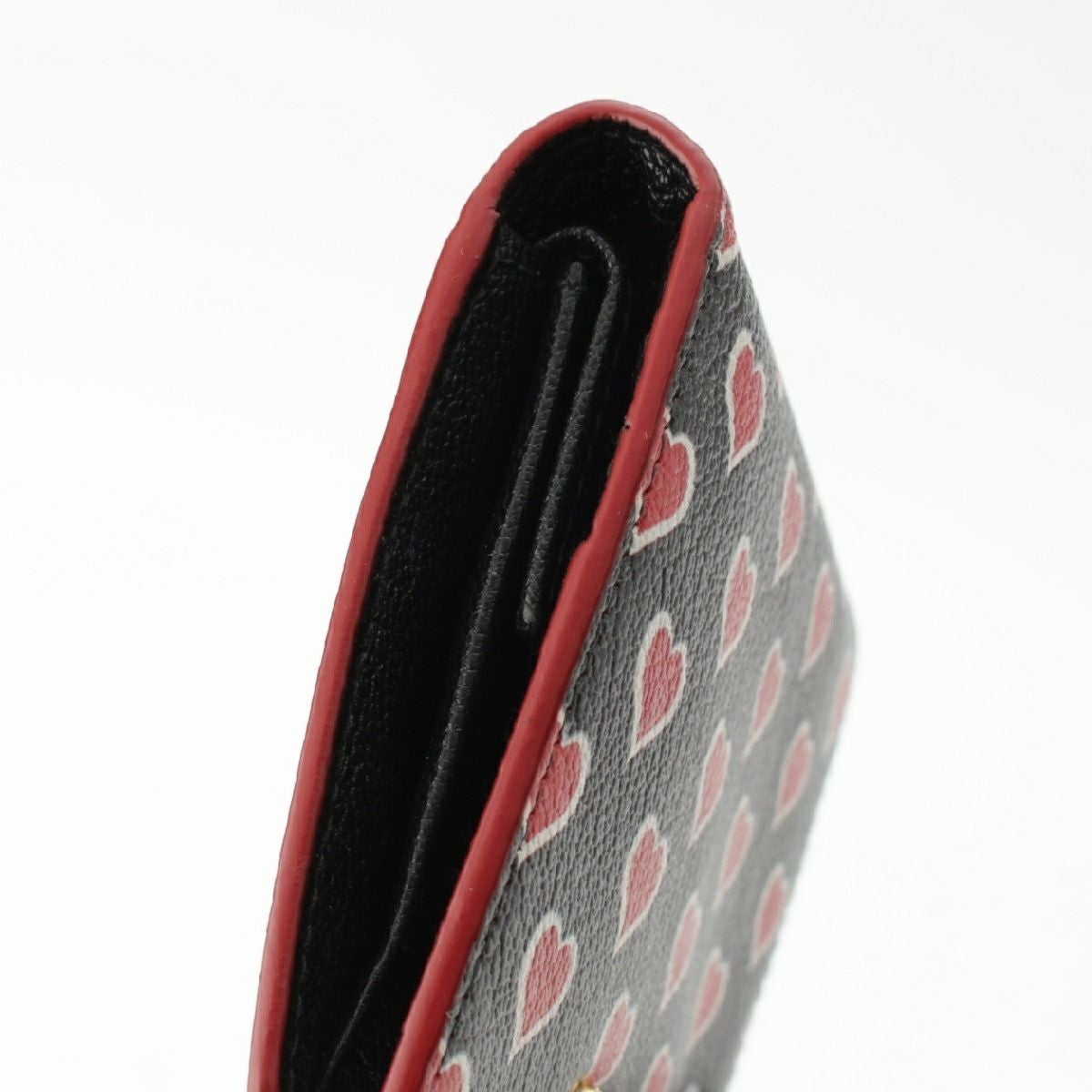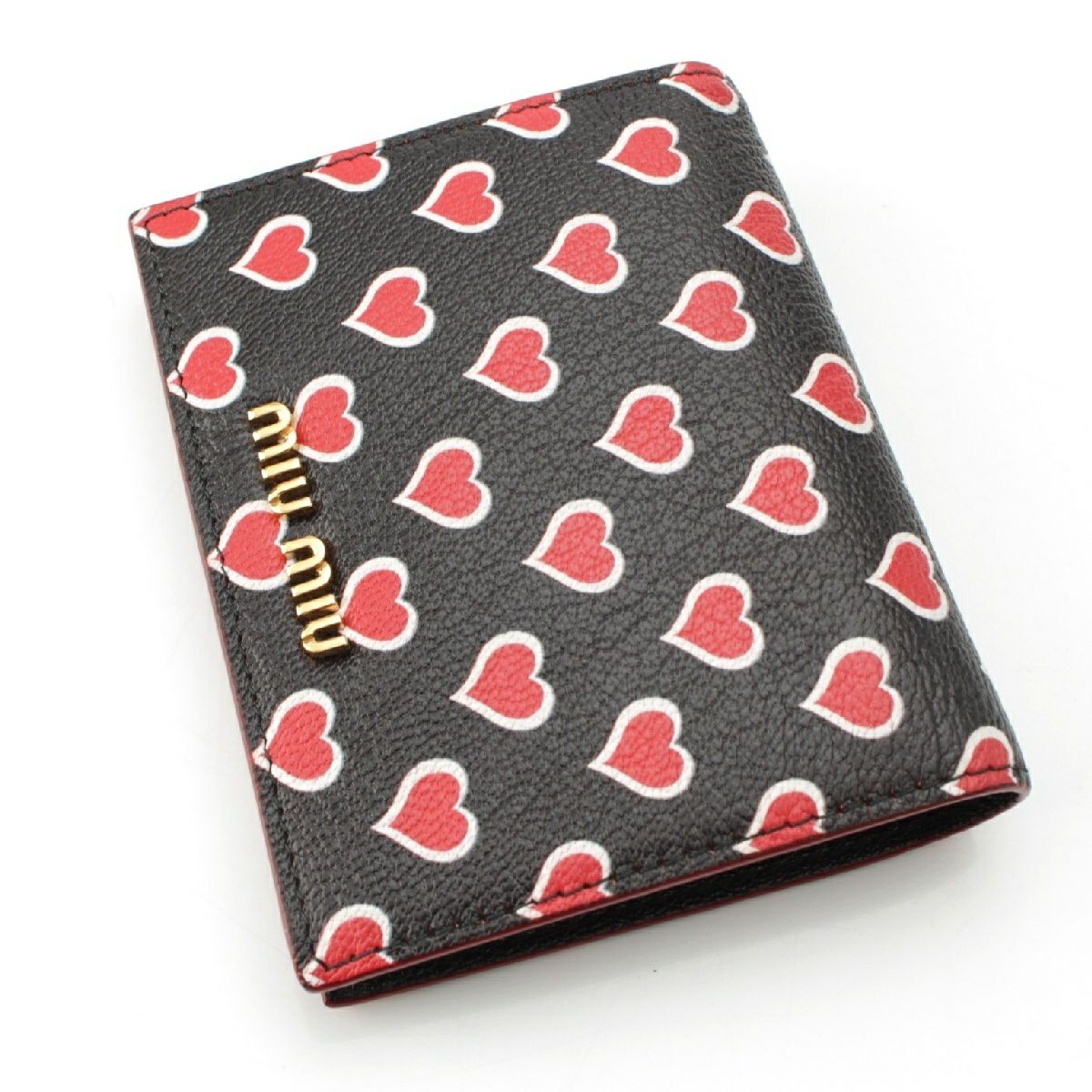 ミュウミュウ レザー ロゴ ハート総柄 コインケース コンパクトウォレット 5MV204 ブラック レッド ゴールド金具