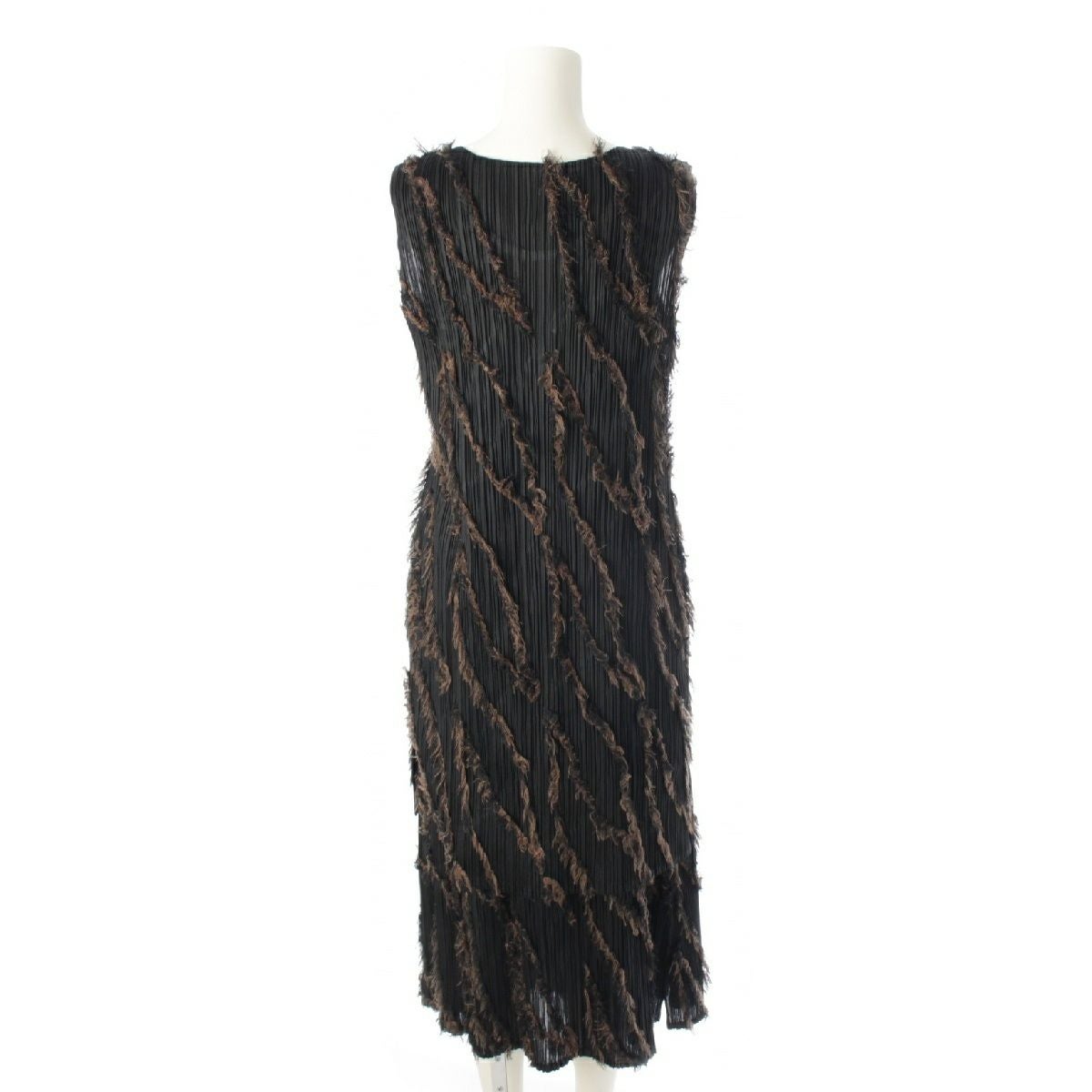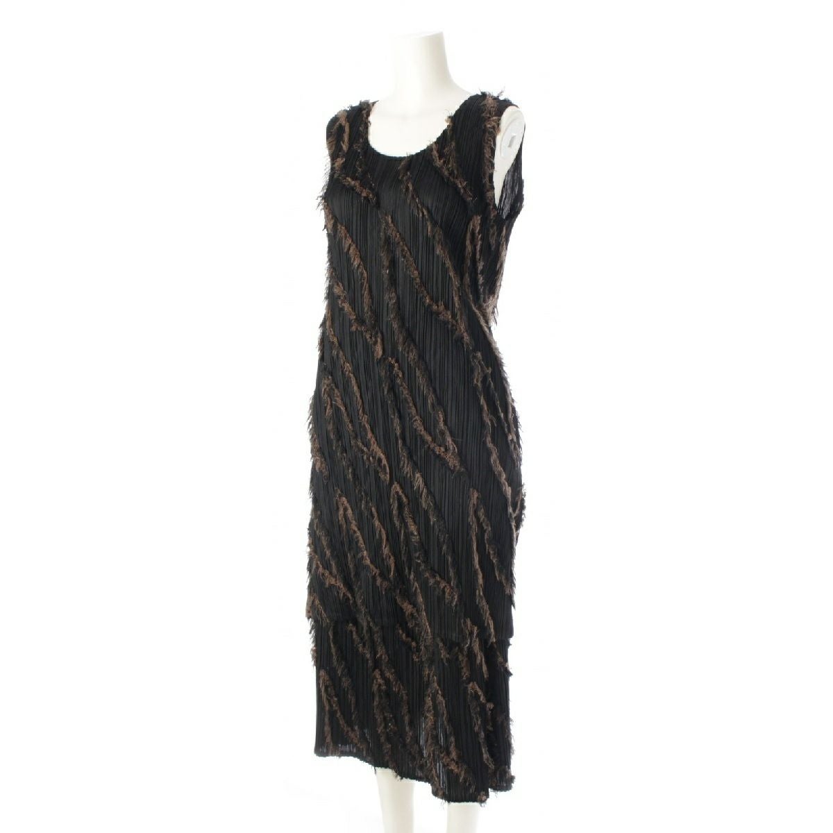 プリーツプリーズ イッセイミヤケ ポリエステル フリンジデザイン 3ピース セットアップ トップス スカート PP43-JK804/JG806 ブラック ブラウン 3