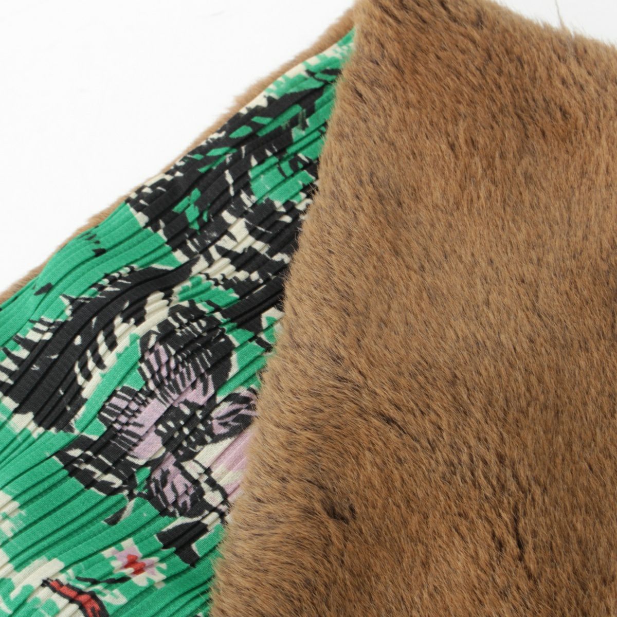 プリーツプリーズ イッセイミヤケ アクリルファー 赤ずきん 総柄 マフラー ストール PP94-AD706 マルチカラー ブラウン