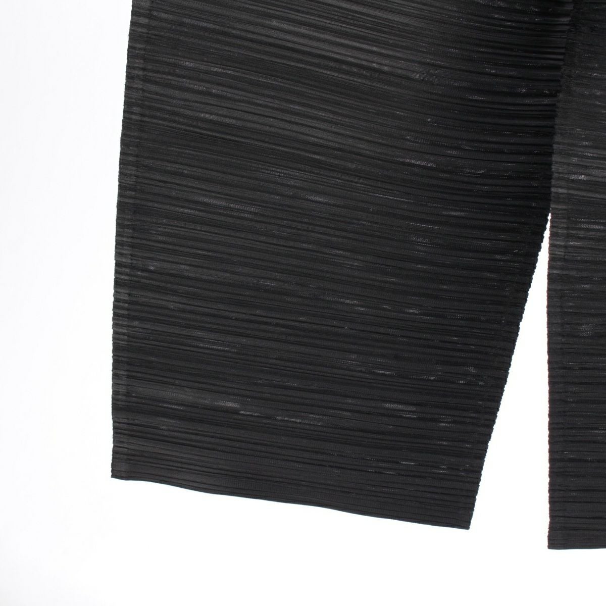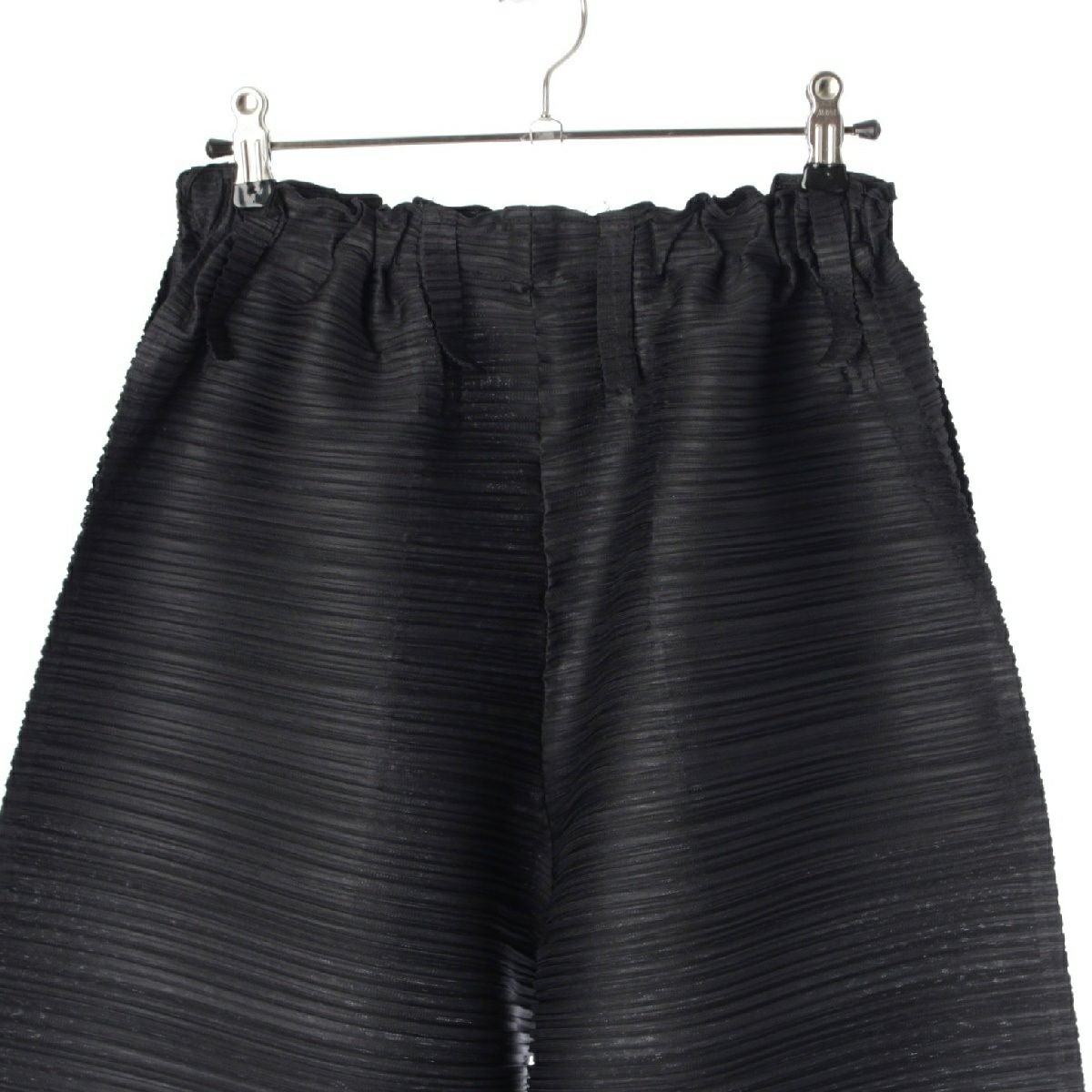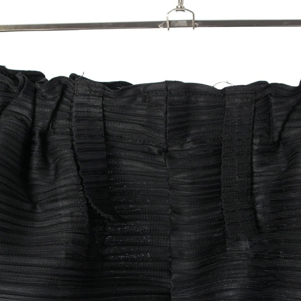 プリーツプリーズ イッセイミヤケ ポリエステル ボーダー ギャザーウエスト ワイド パンツ ボトムス PP83-JF413 ブラック 3