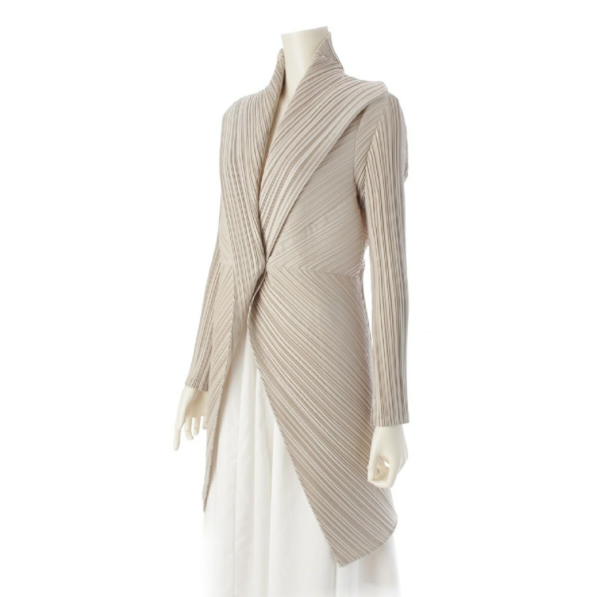イッセイミヤケ 変形 斜めプリーツ ロング コート ジャケット IM93FD722 オフホワイト ベージュ 2