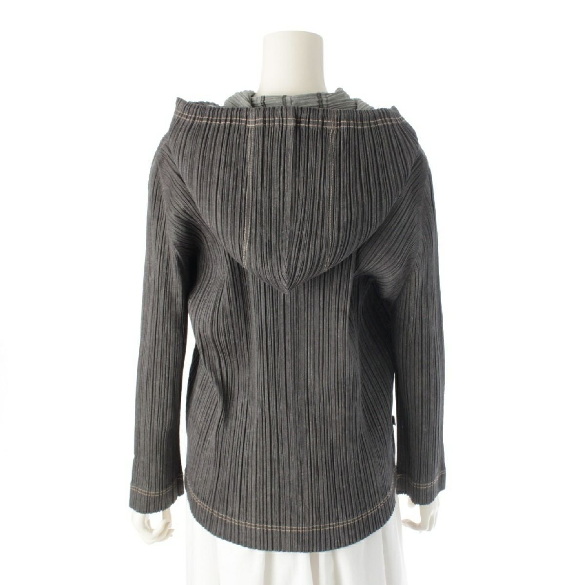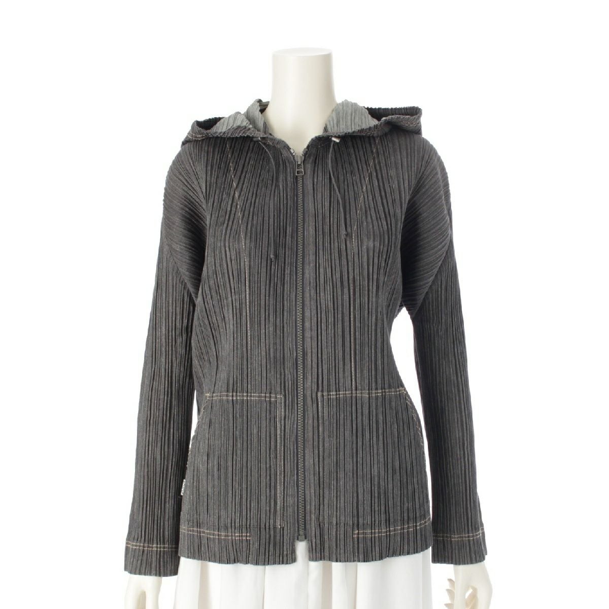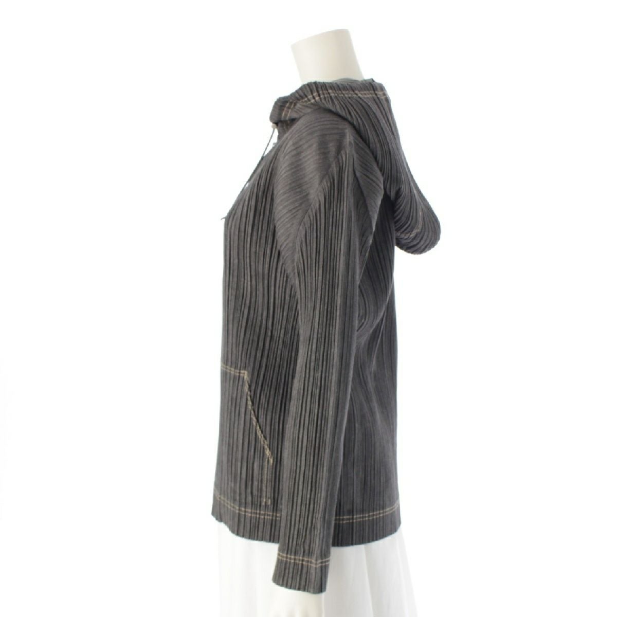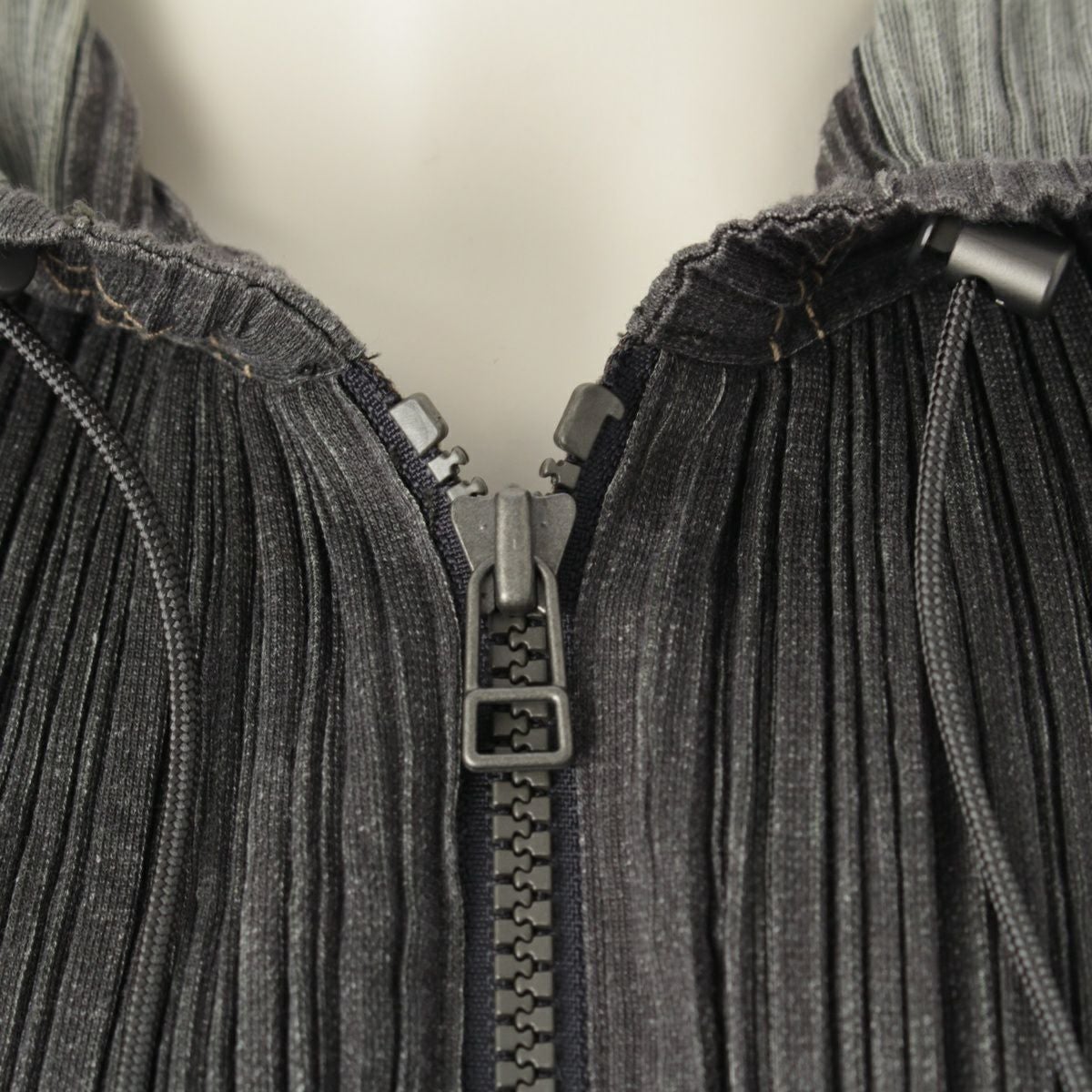 プリーツプリーズ イッセイミヤケ コットン デニム転写 ジップアップ パーカー トップス ジャケット PP71-JC622 ブラック グレー 3