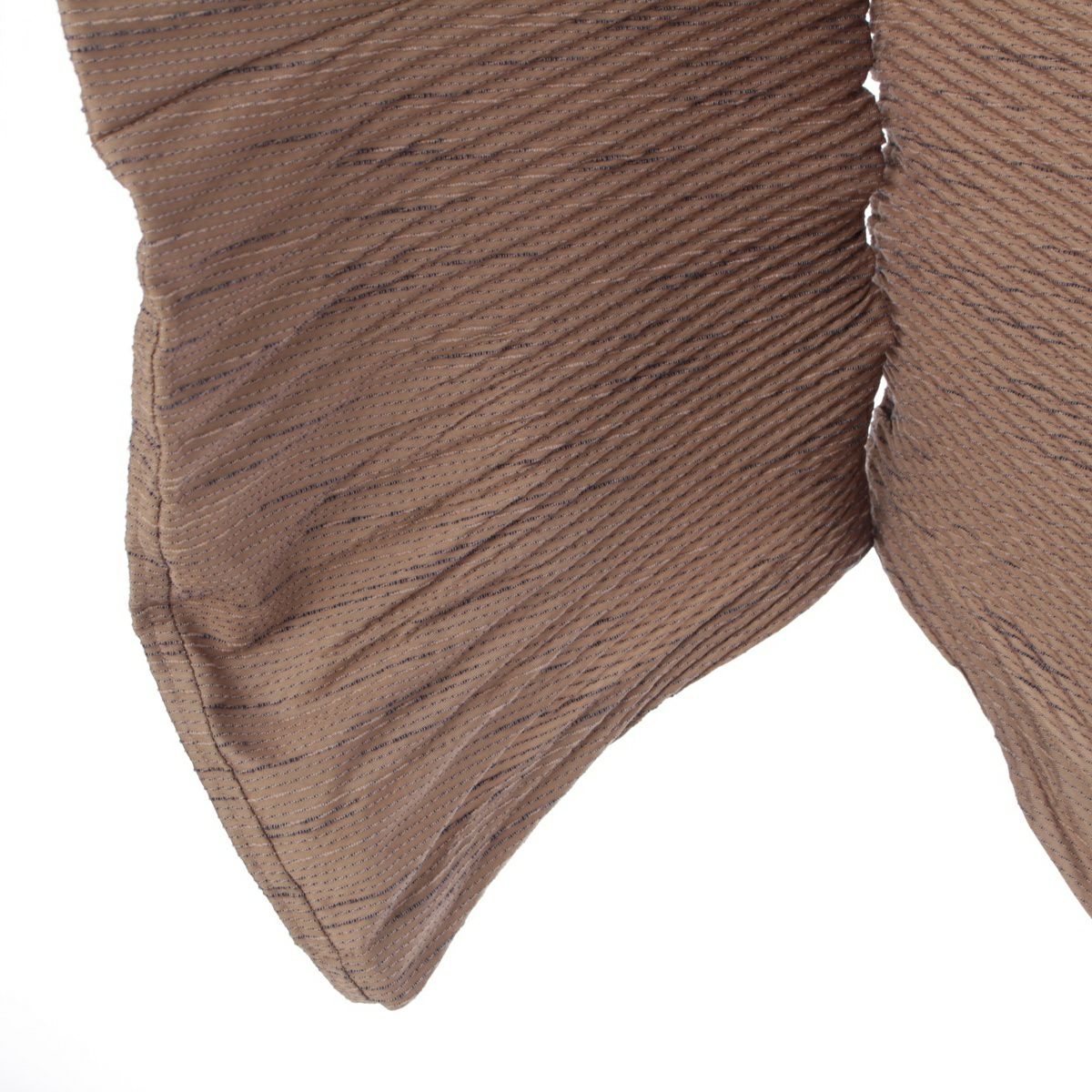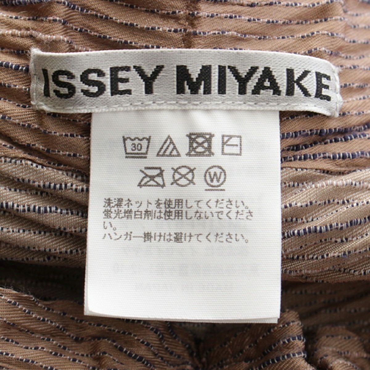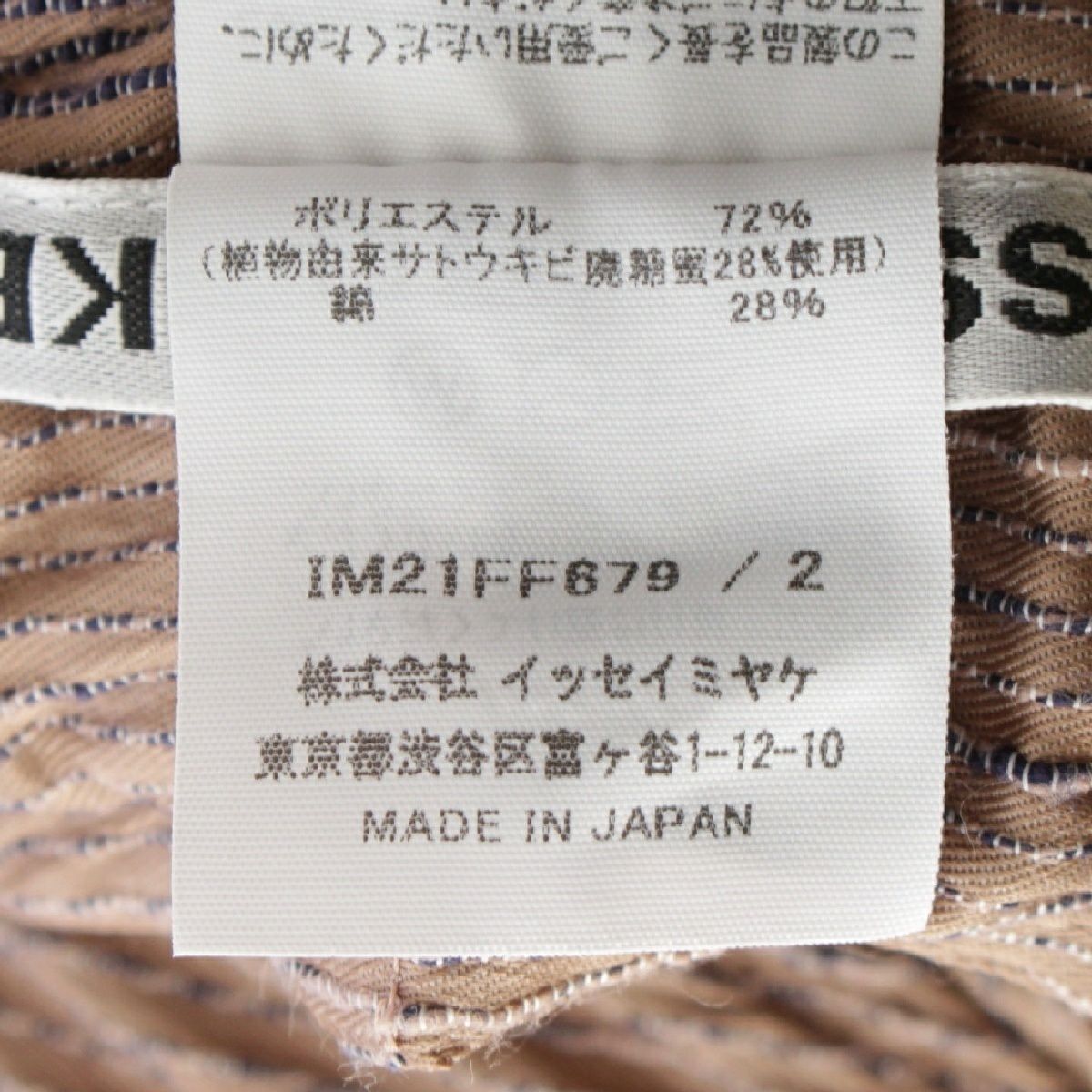 イッセイミヤケ コットン ネップ生地 横プリーツ ボーダー 変わり織り ワイド パンツ ガウチョ ボトムス IM21FF679 ベージュ ネイビー 2