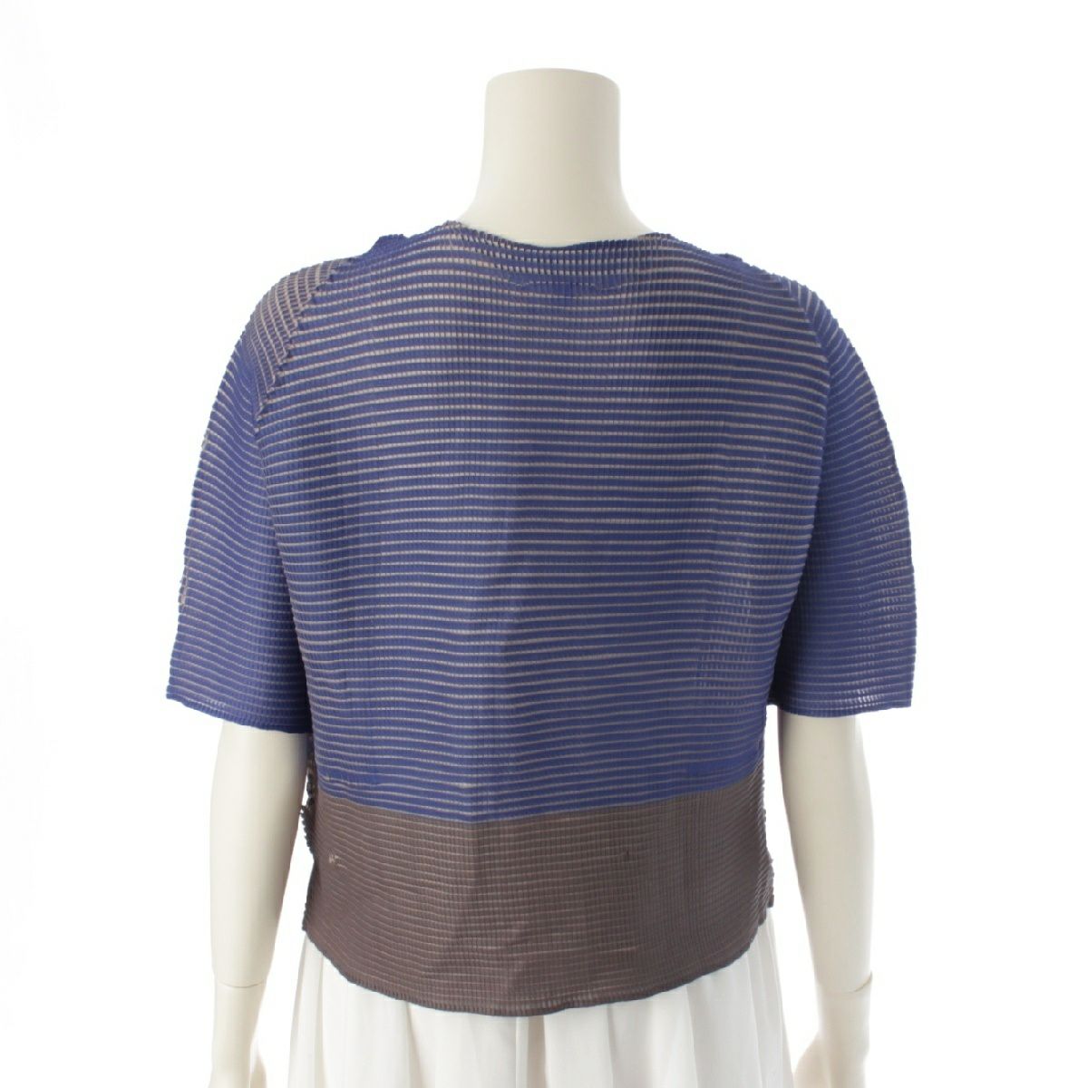 イッセイミヤケ 22SS スクエアプリーツ 半袖 クルーネック カーディガン シャツ ブラウス トップス IM21 FJ688 ベージュ ブルー カーキ 2