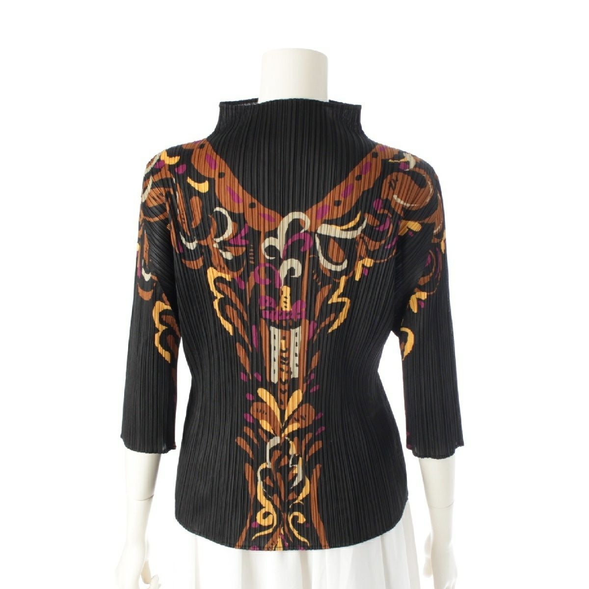 プリーツプリーズ イッセイミヤケ 7分袖 ボトルネック トップス カットソー PP93-JK892 ブラック×マルチカラー 3